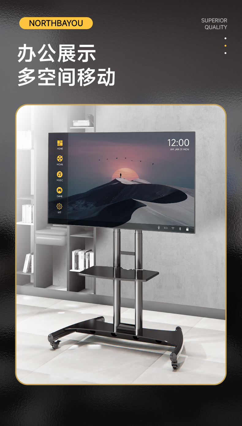 ТВ -кронштейн -полная телевизионная стойка может переместить колеса -в одном транспортном офисе 55/65/70/75 NB