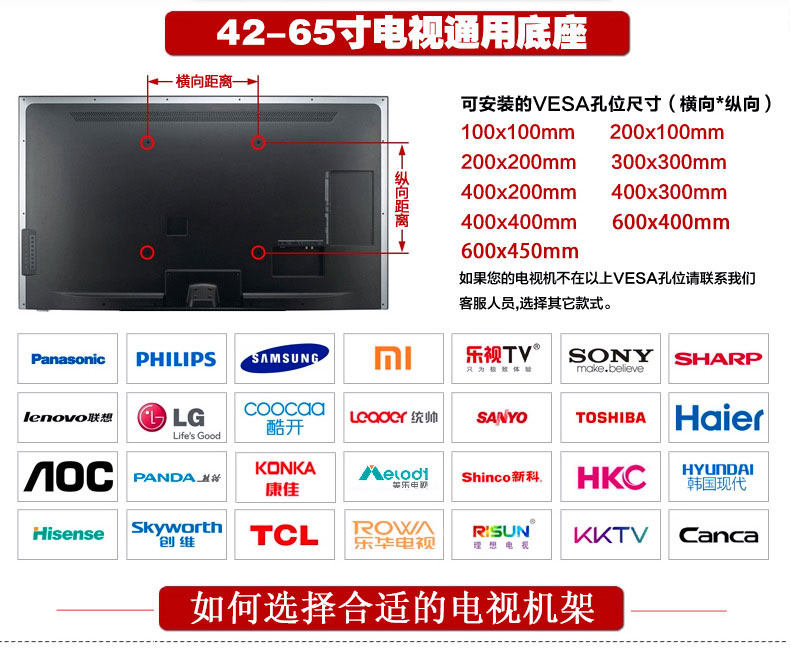 ЖК -телевизионная база Chuangwei Changhong Haixin Sharp Xiaomi 50/55/65 -INTH General Desktop Base Base Hanging Shelf