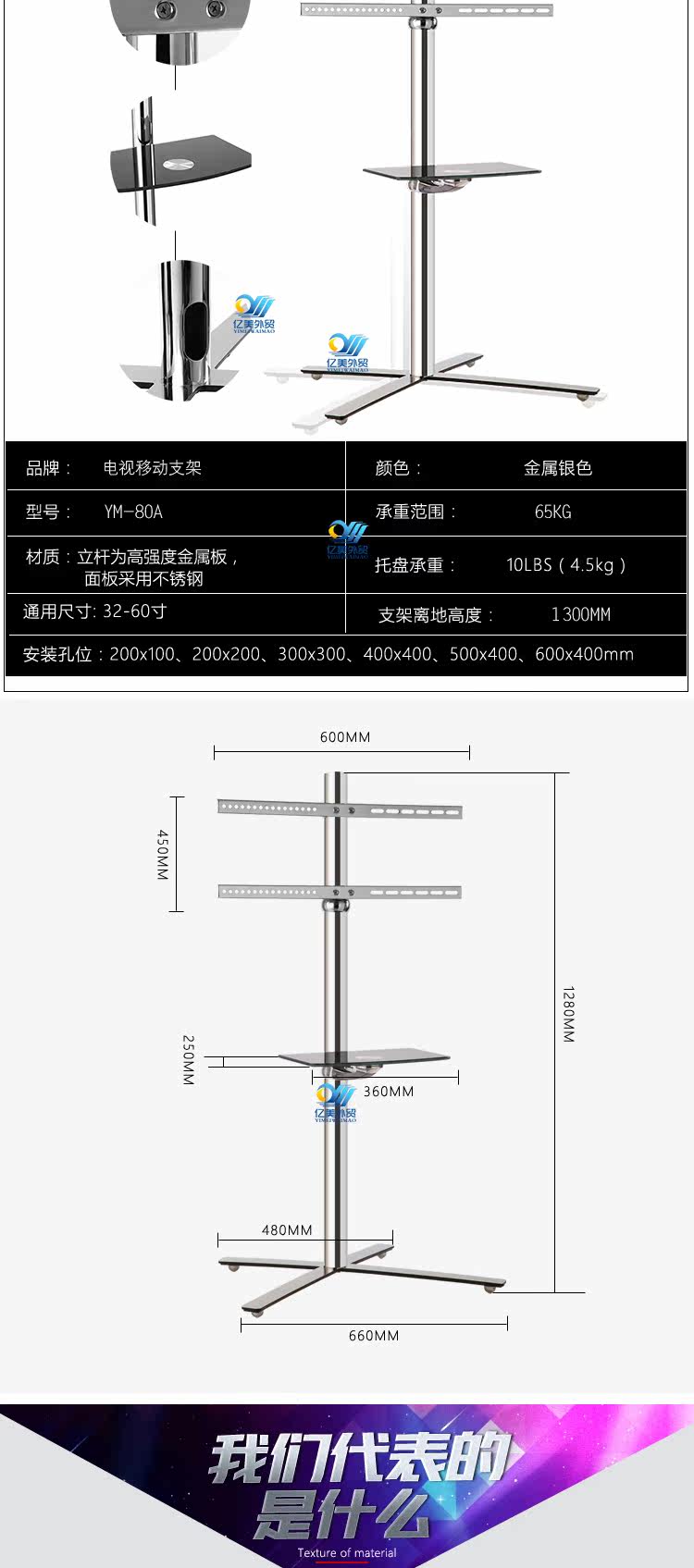 Samsung, универсальный телевизор, трубка, тележка из нержавеющей стали