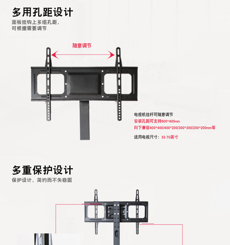 TCL -без пунша -Бесплатный ЖК -телевизионный базовый держатель базовых кронштейнов подвесные стойки высокой и низкой, наклонившись влево и вправо, чтобы регулировать универсальное движение посадки