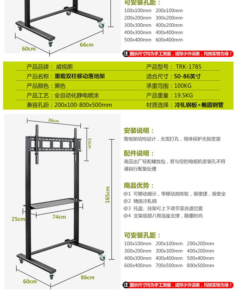 | Цвет: | 1600 маленький экран 〖32-65 дюймов〗 Вся стальная двухколонная тяжелая нагрузка 60 кг, 1764 Средний экран 〖40-75 дюймов〗 Вся стальная двухколонная тяжелая нагрузка 80 кг, 1785 Большой экран 〖50-86 дюймов〗 Вся стальная двухколонная тяжелая нагрузка 100 кг |