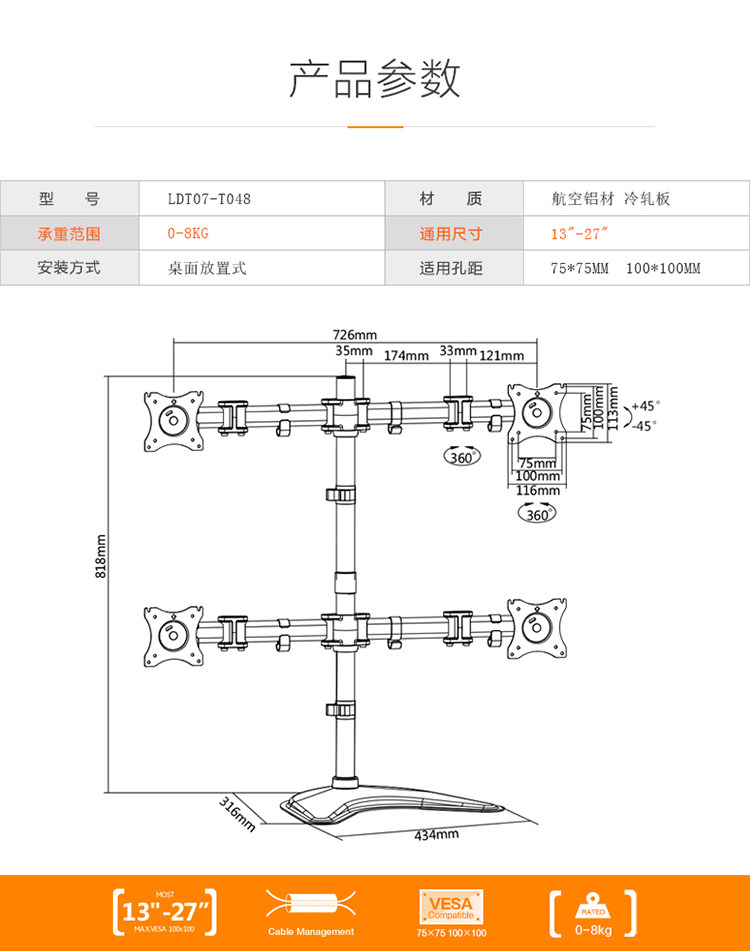 | Цвет: | Черный, четыре экрана, поддержка 17-27 дюймов., Черный, четыре экрана, поддержка 17-32 дюймов. |
