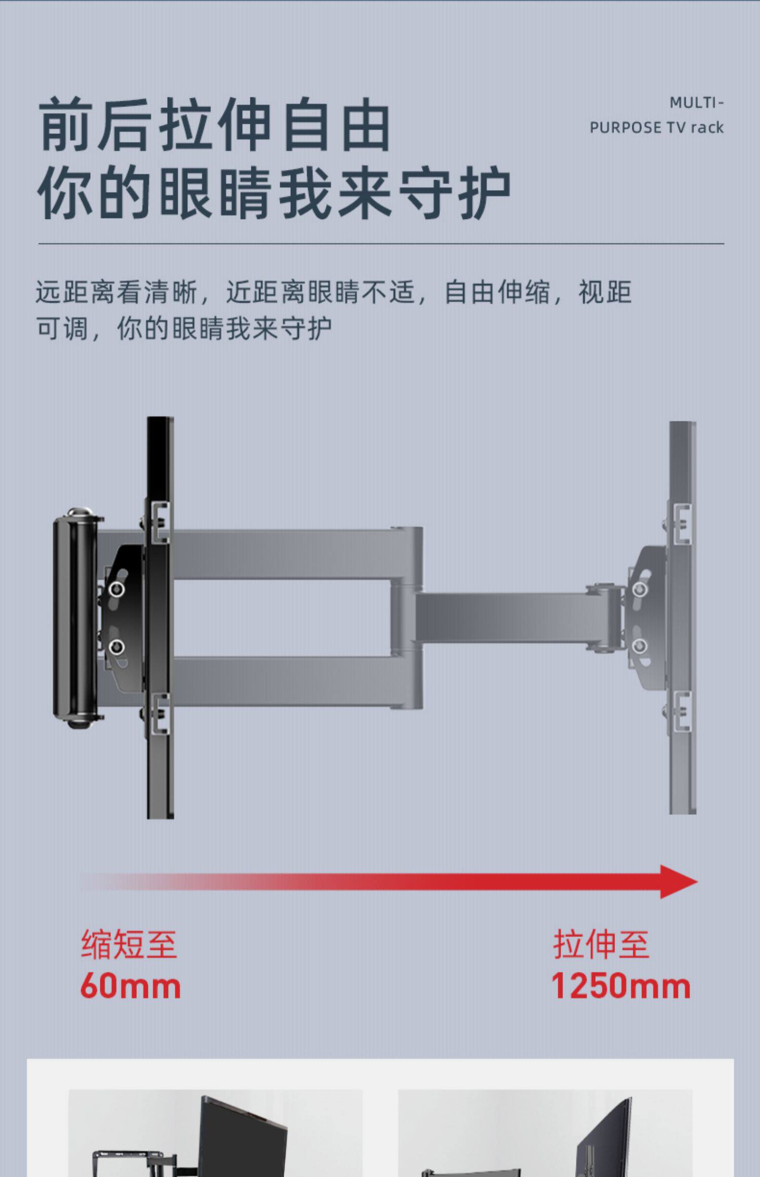 Телескопический крутящийся телевизор, складная настенная универсальная трубка, 75 дюймов