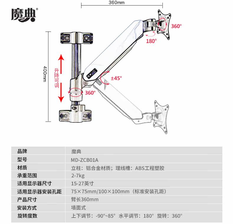 魔典 Стеной -настенный кронштейн Кронштейн компьютерный жидкокристаллический вращение подвеска может отрегулировать высокий и низкий уровень 14 ~ 32