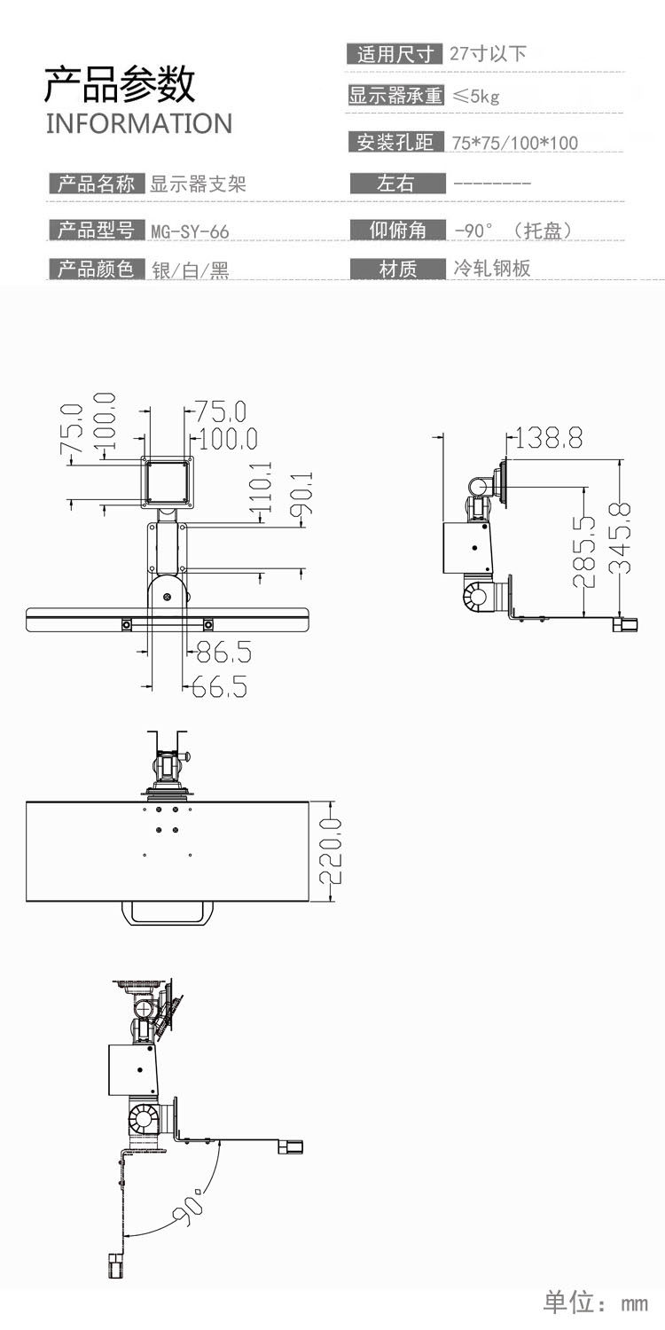 MG-SY-66 Дисплей клавиатура интегрированная настенная вращающаяся сельскопическая кронштейна выставка торгового центра Short Arm
