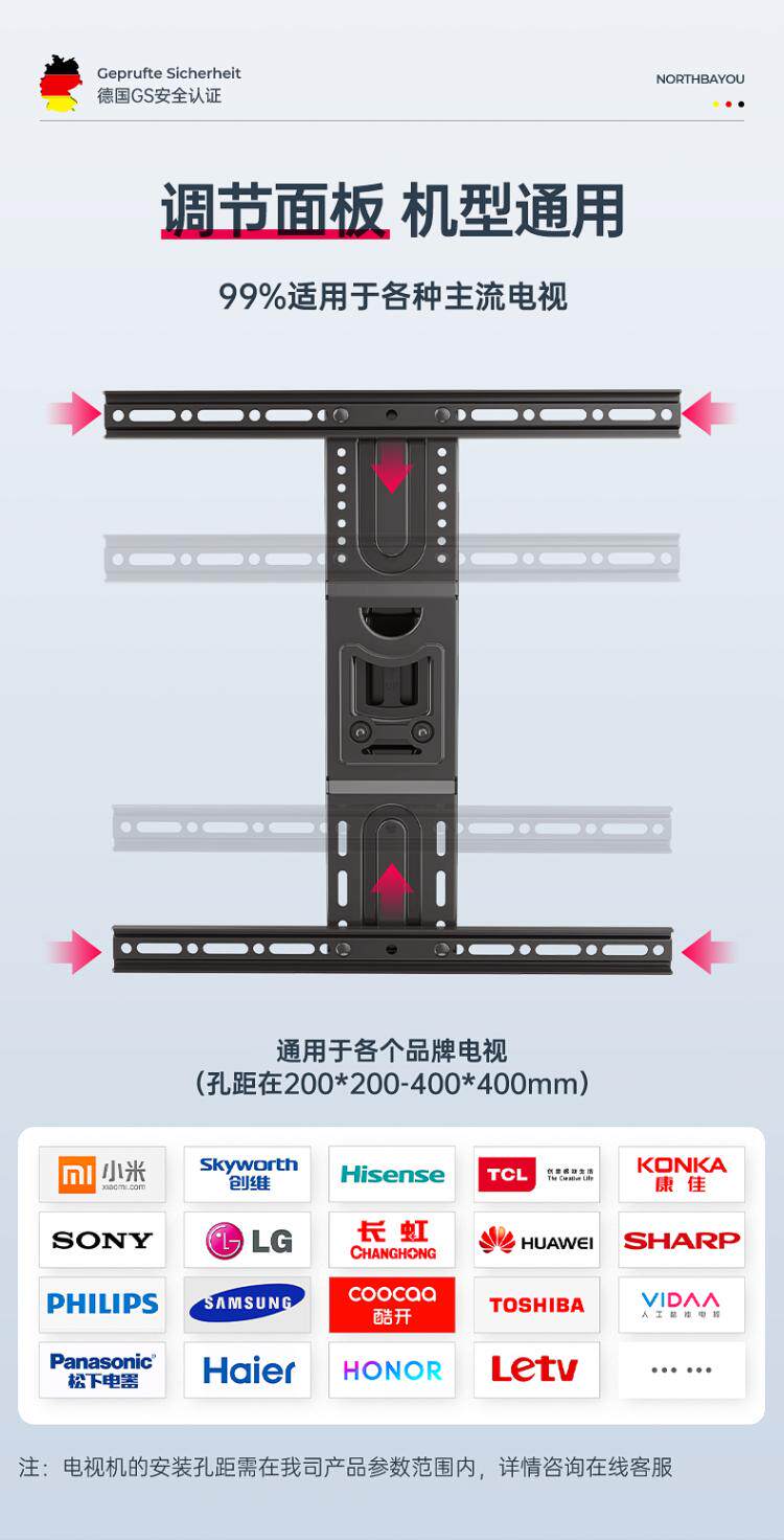 NB Регулируемая растяпательная резиновая решетка универсальная телевизионная стена висящая рама