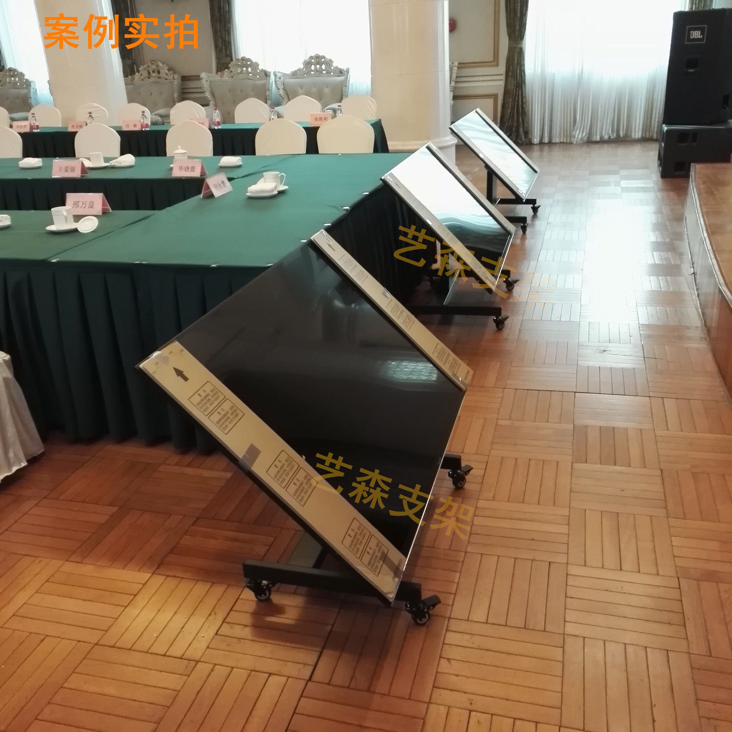 Конференц -зал крыльца ЖК -телевизор запуска возвращается в карликовую сценическую сцену.
