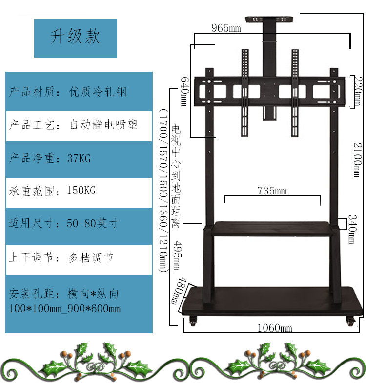 | Цвет: | Усовершенствованная модель S (обычная для 32–65 дюймов), Усовершенствованная модель А (универсальная для 32-65 дюймов), Белый, 32, 65 дюймов, Усовершенствованная модель Б (универсальная для 50-80 дюймов), Утолщенный тип Б (обычно 50-80 дюймов), Флагманская модель C (универсал 50–80 дюймов), Увеличенный тип D (обычно 55–95 дюймов), Увеличенная модель E (универсальная от 65 до 110 дюймов), Вращающийся Т-образный стиль (применимо к 42-65 дюймам), Подиум типа F (обычный для 32-65 дюймов), Классический стиль H (универсальный для 32–65 дюймов) |