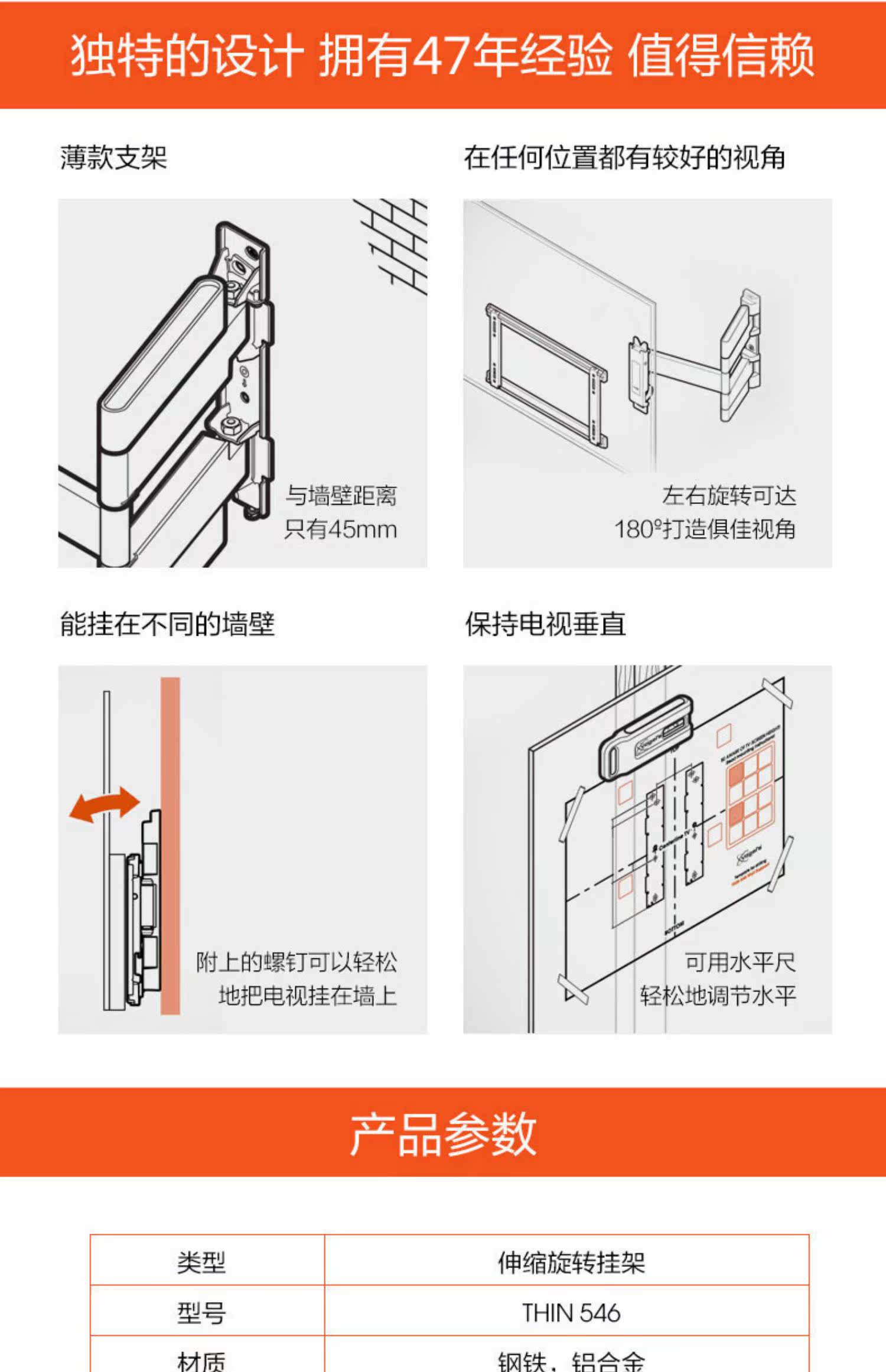 42/48/55/65 -Вращающая телевизионная поддержка Телескопическая подвесная стойка e -Sports OLED подходит для LG Samsung Sony TLC