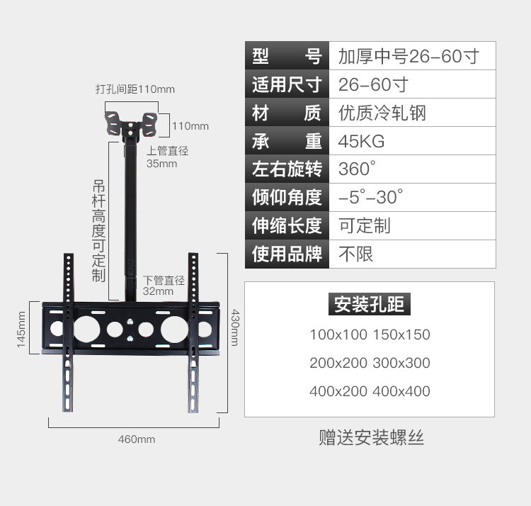 | Цвет: | Маленький, 32, 1.0м, Маленький, 32, 1.5м, Маленький, 32, 2.0м, Маленький, 32, 2.5м, Маленький, 32, 3.0м, [Толстый средний номер 26-55 дюймов] 0,5-1,0 метров, [Толстый средний номер 26-55 дюймов] 0,5-1,5 метра, [Толстый средний номер 26-55 дюймов] 0,5-2,0 метра, [Толстый средний номер 26-55 дюймов] 0,5-2,5 метра, [Толстый средний номер 26-55 дюймов] 0,5-3,0 метра, [Толстые большие 40-75 дюймов] 0,65-1,0 метров, [Толстые большие большие 40-75 дюймов] 0,65-1,5 метра, [Толстые большие 40-75 дюймов] 0,65-2,0 метров, [Толстые большие 40-75 дюймов] 0,65-3,0 метра, [Одноразовый двойной экран 32 дюйма] 0,6-1 метра может убираться, 0.5м, 0.5м, [1-метровый стержень для удлинительного метра] может быть расширен 0,5-1 метра |