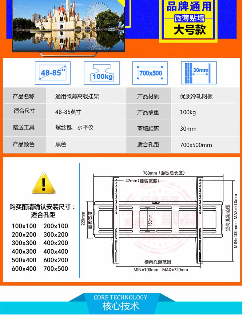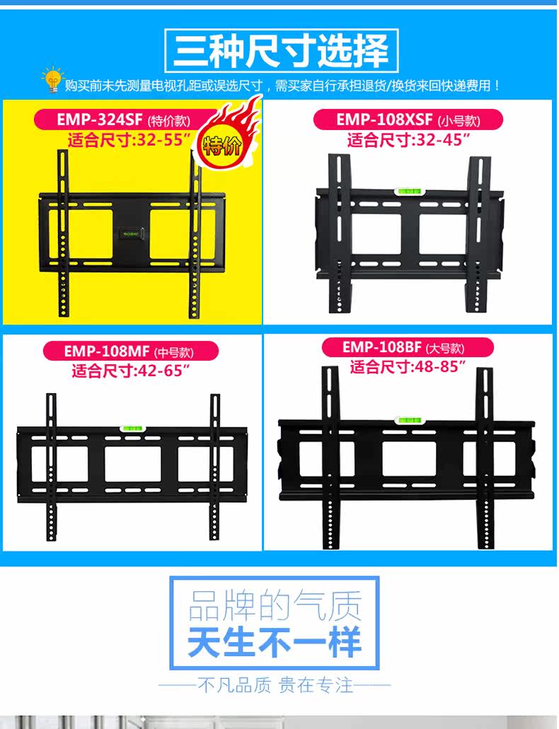 | Цвет: | Толстая модель/средняя (32-49 дюйма) толщина стальной пластины 1,8 мм тяжелая нагрузка, Толстая модель/большая (42-65 дюйма) толщина стальной пластины 1,8 мм тяжелая нагрузка, Тяжелая нагрузка/очень большая (55-86-дюймовая) толщина стальной пластины 1,8 мм тяжелая нагрузка |