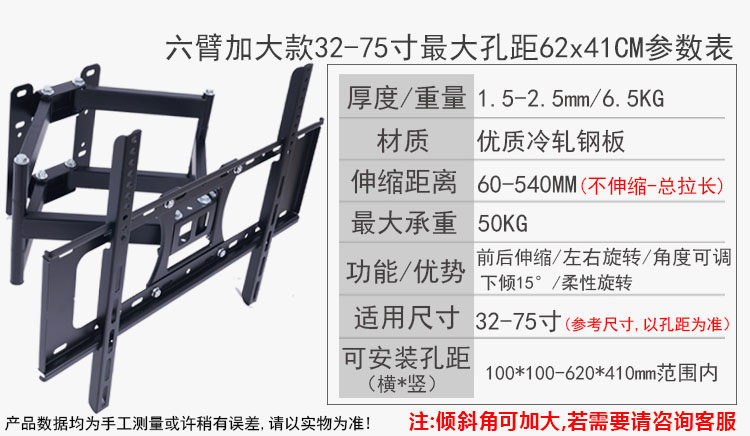 | Цвет: | 32-75-дюймовый трехручный супер нагрузка/65-дюймовая банка 90 градусов, 32-75-дюймовый подшипник с подшипником с шестью руками/65-дюймовые внутренние 80 градусов, 32-70-дюймовый шесть рук увеличивает подшипник/70 дюймов 40 градусов, 32-60-дюймовый нагрузка шести рук/60 дюймов может быть 50 градусов в пределах 60, 32-60-дюймовый нагрузка с тремя руками/32 дюйма в пределах 90 градусов, 14-32-дюймовый стандартный несущий нагрузки/32 дюйма в пределах 90 градусов, 14-30 дюймов стандартного несущего/30 дюймов в пределах 30 дюймов может быть 90 градусов, 32-60-дюймовый нагрузка с тремя руками/55 дюймов в пределах 90 градусов |