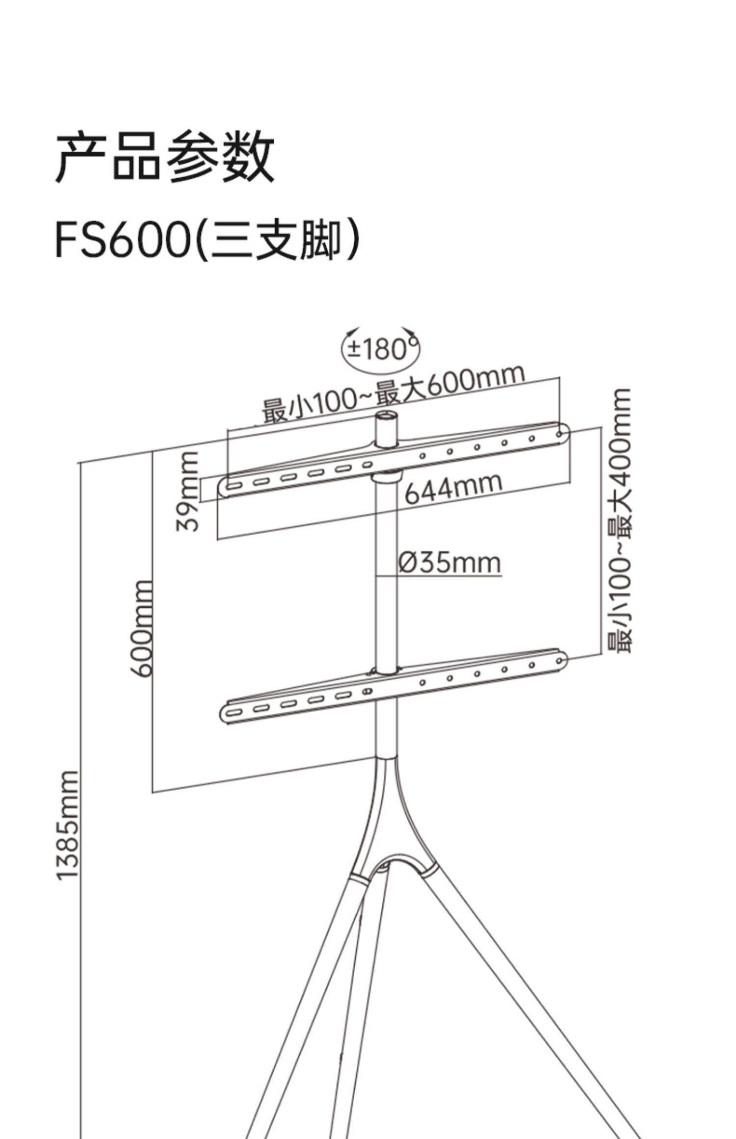 Brateck North Arc TV Satters Field Cable Мобильное телевидение Стропер Повествование 43 55 65 70 дюймов