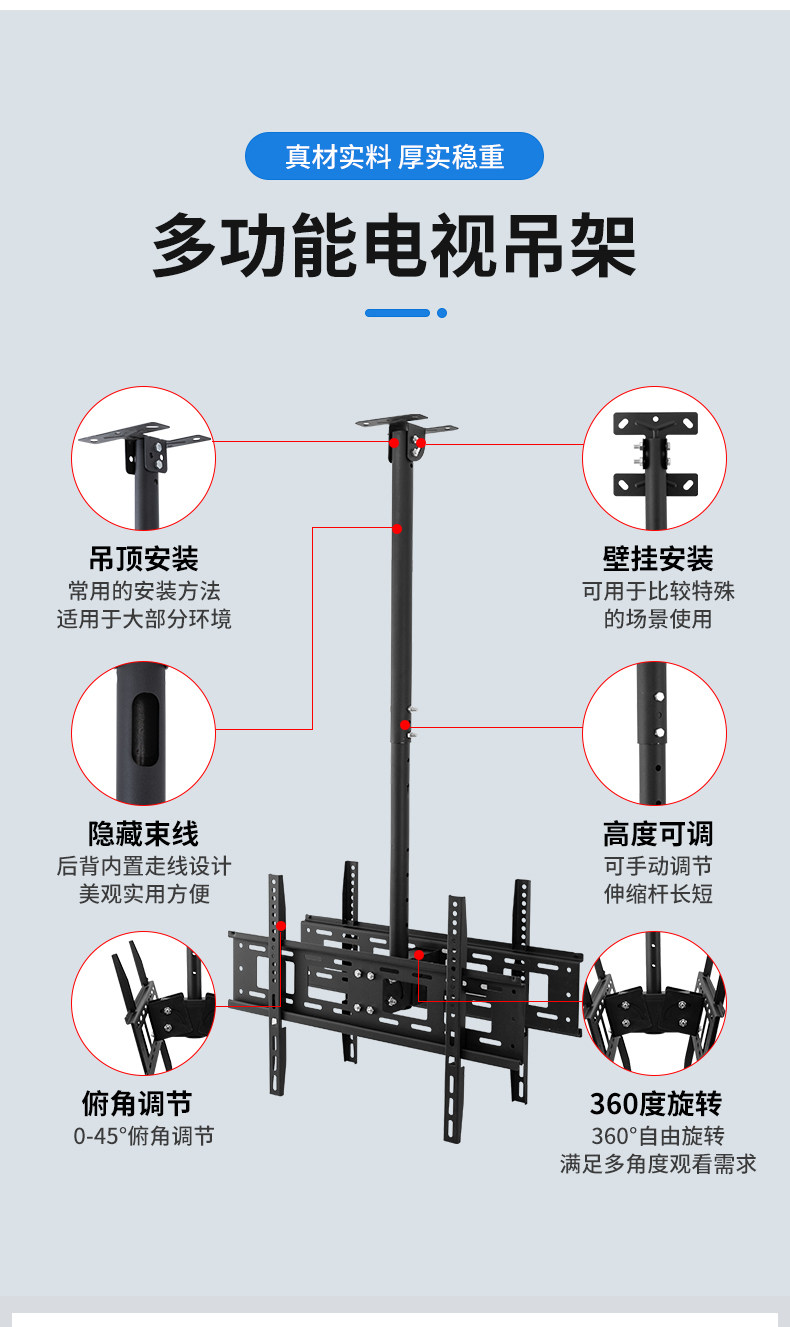 ЖК -телевизор Потолочная каркаса на подвесной телевизоре 43 55 70 -INCH 360 -DEGREE TELESCOPIC Вращающийся подвесной подвесной кронштейн