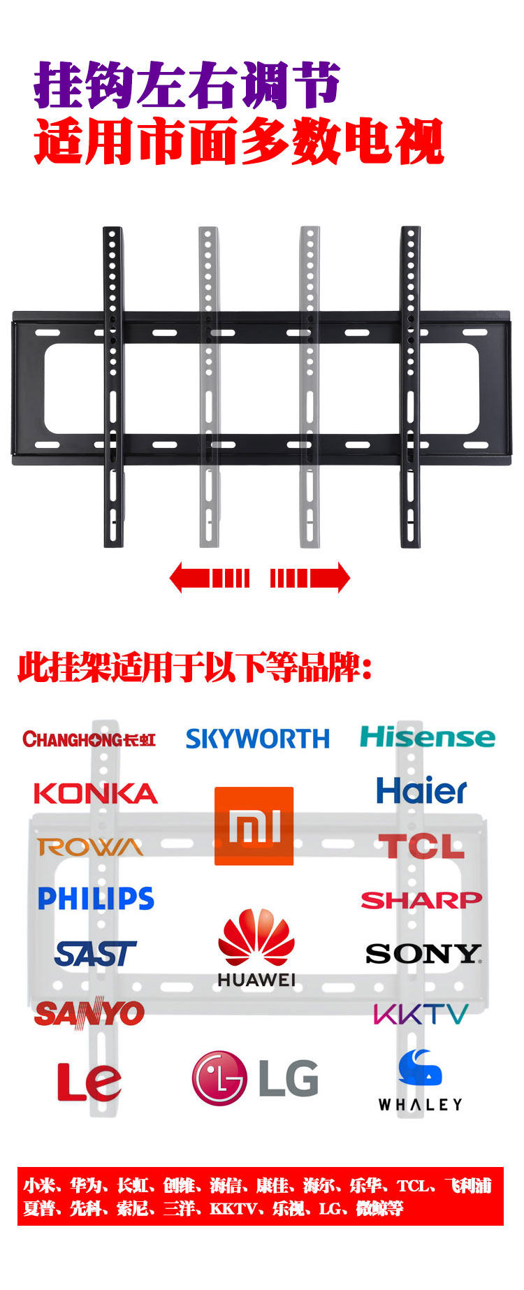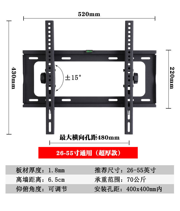 | Цвет: | 14-32-дюймовый универсальный (тонкая модель), 14-32-дюймовый общий (стандартная модель), 26-55-дюймовый универсальный (стандартная модель), 26-55-дюймовый универсальный (толстая модель), 26-55-дюймовый генерал (ультрафильса), 40-80-дюймовый универсальный (толстая модель), 40-80-дюймовый универсальный (модель ультрафиляции), 60-110 дюймов общего (ультрафиляция), 14-32-дюймовый универсальный (регулируемая модель), 26-55-дюймовый универсальный (утолщенная регулируемая модель), 26-55-дюймовый общий общий, 37-70-дюймовый универсальный (утолщенная регулируемая модель), 37-70-дюймовый универсальный (регулируемая модель ультрафиляции) |