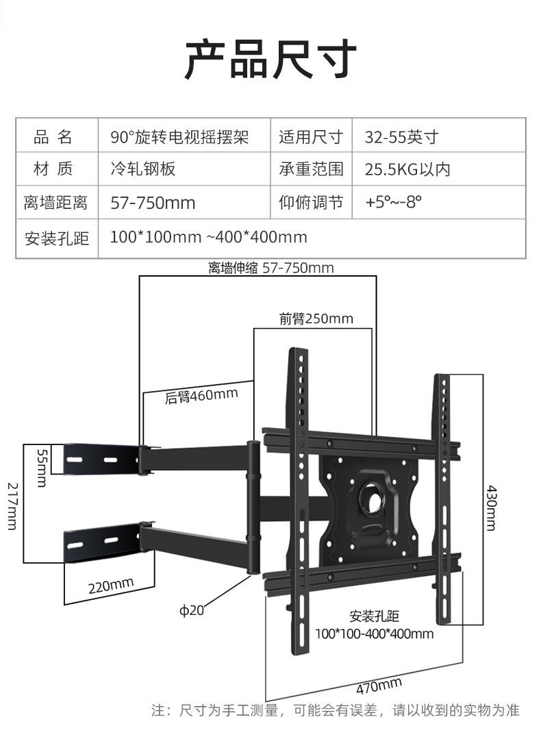 Подходит для Xiaomi Redmi A55/X65/EA75-дюймовый телевизионный выступ 180 градусов телескопического враща