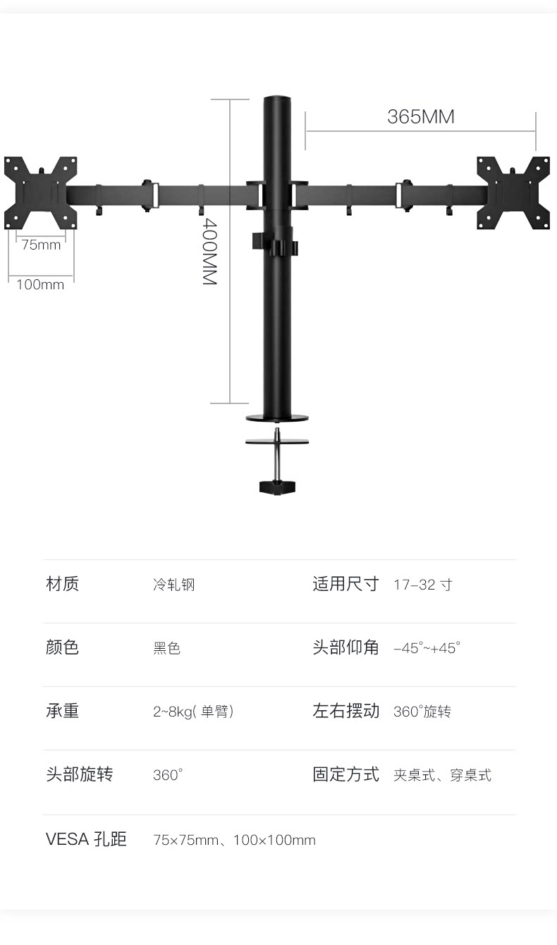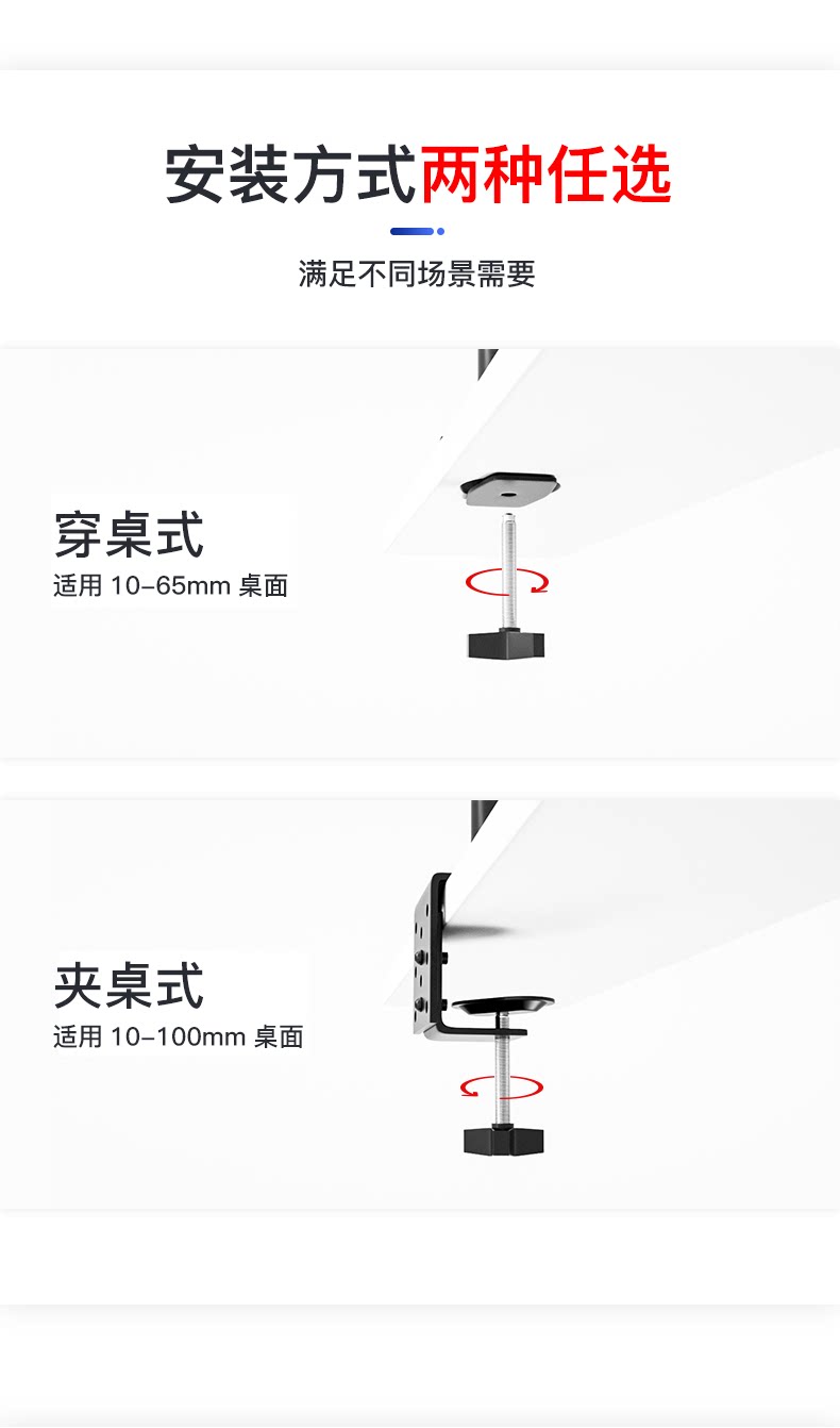 Кроншень компьютерного монитора рука на рабочем столе с двойным экраном с двойным экраном повышенным подъемом подъема и выдвижным вращением Vientiane Universal Base