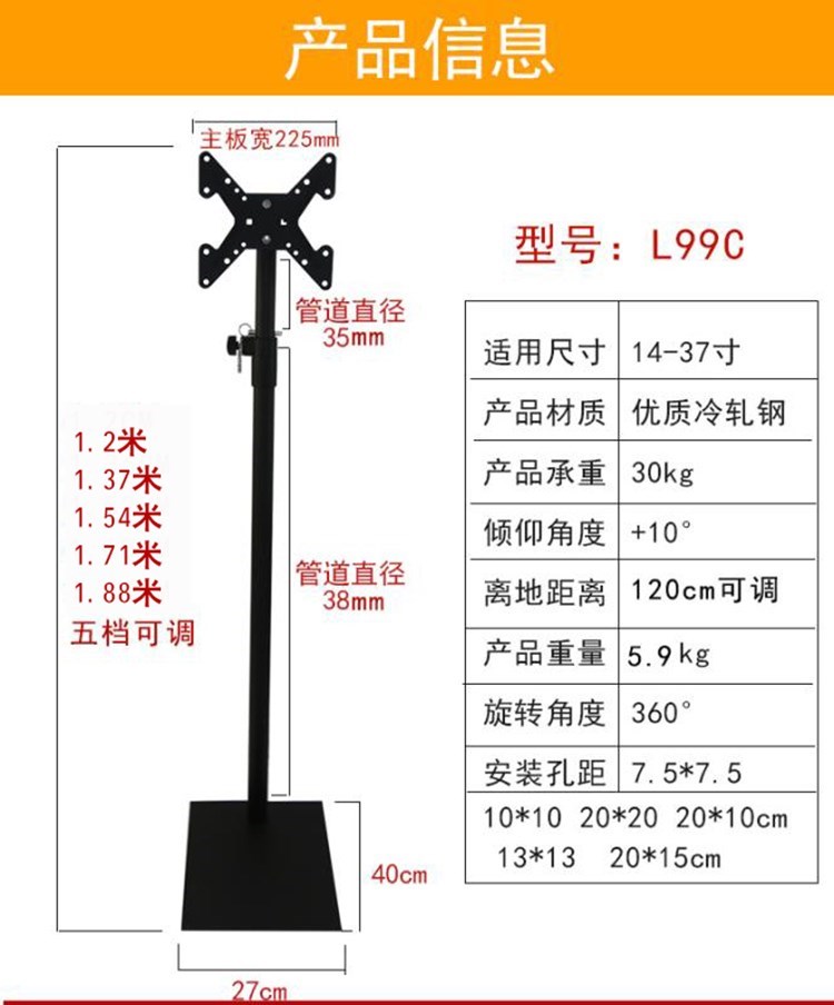 Мобильный универсальный кронштейн 14 Различные ЖК-базовые перемешивание вертикального вертикального телевидения 37-дюймового дисплея-