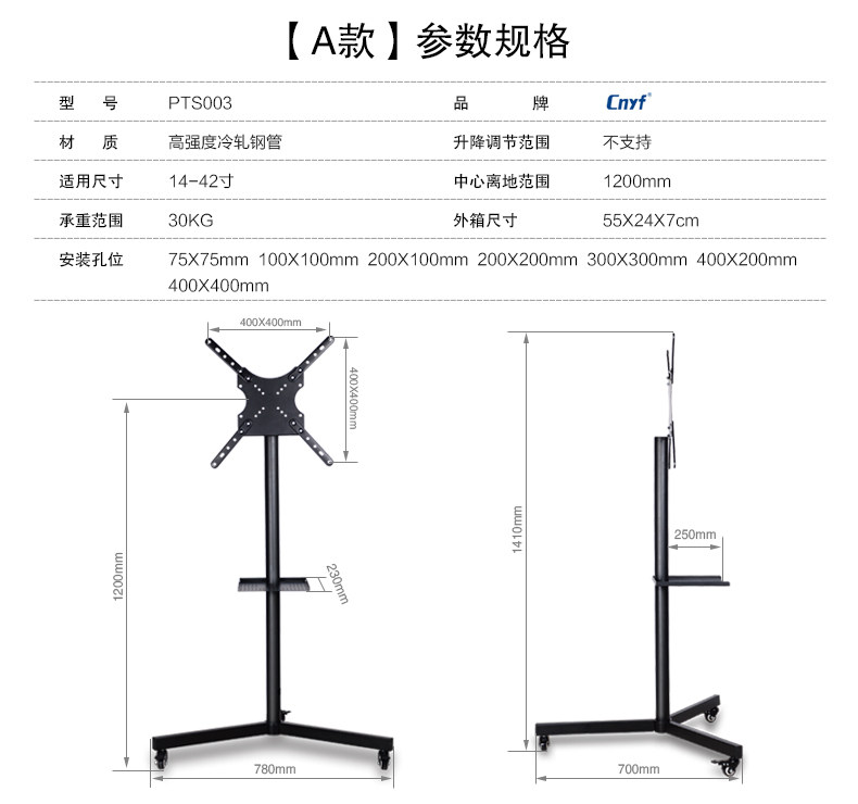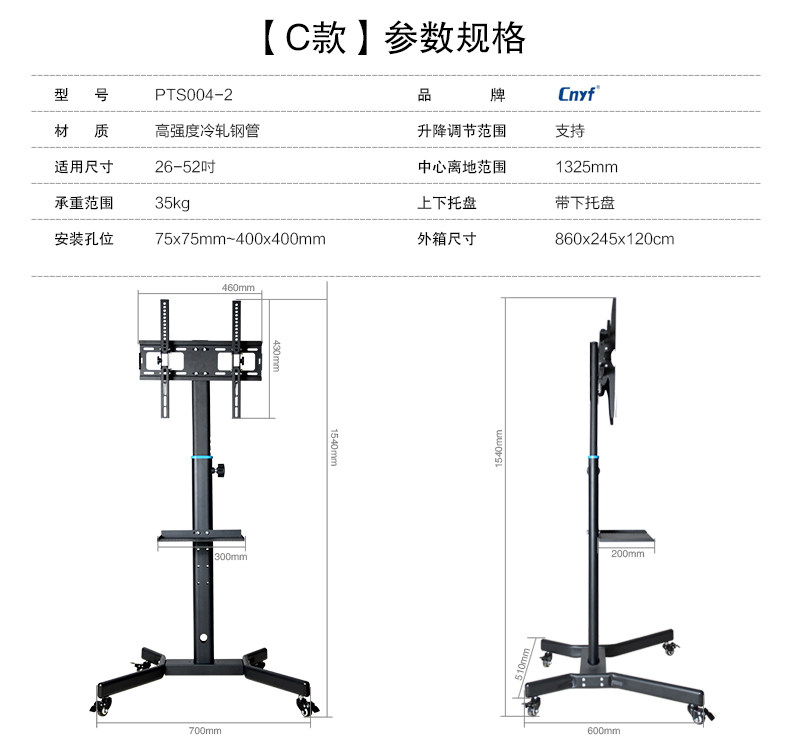 | Цвет: | 【Модель A】 14-42 дюйма с нижним поддоном, высота не регулируется, 【B Модель】 26-52 дюйма без подноса регулируемой высоты, 【Стиль C】 26-52 дюйма с регулируемой высотой нижней лотка, 【D Модель】 32-60 дюймов с регулируемой верхней и нижней высотой лотка |