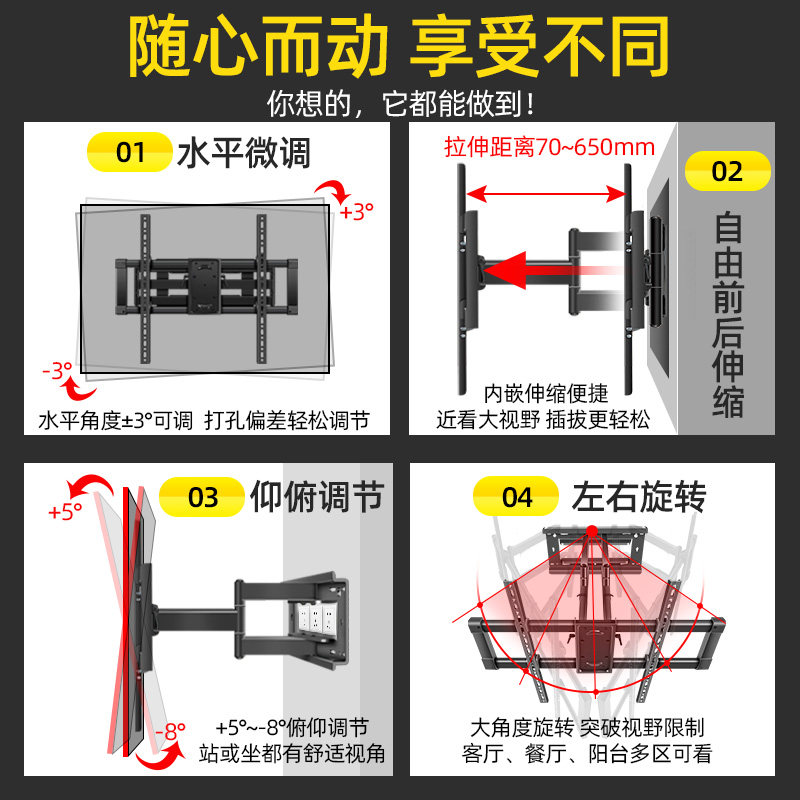 Chuangwei Kukai Max86 -INCH Special Smart Smart Telecopic Retation Cracket может переместить телевизор.