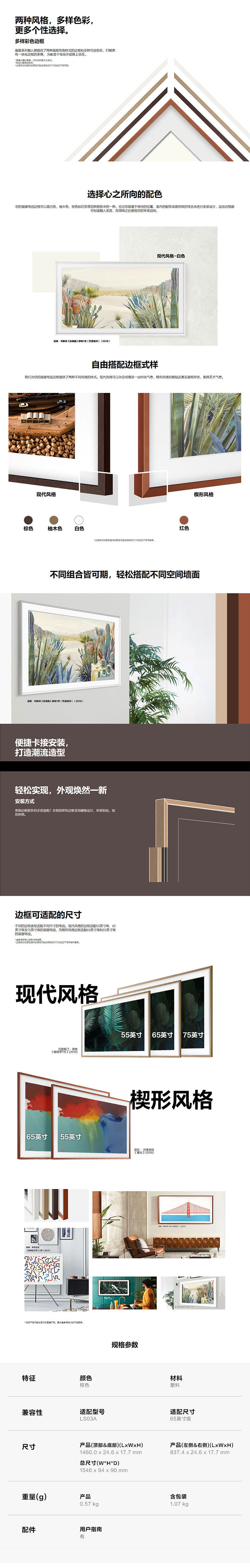Samsung/三星 VG-SCFA65BWBXZ 65-дюймовый каркасный рисунок настенный телевизионный телевизор Brown Brown