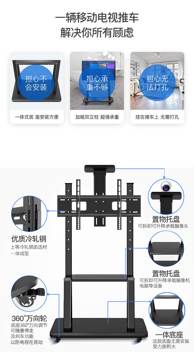 Кабельный телевизионный кронштейн пол -разделитель рамки TCL Xiaomi 55/6582 -INTH Вращающаяся полоса вращающаяся коляска белая