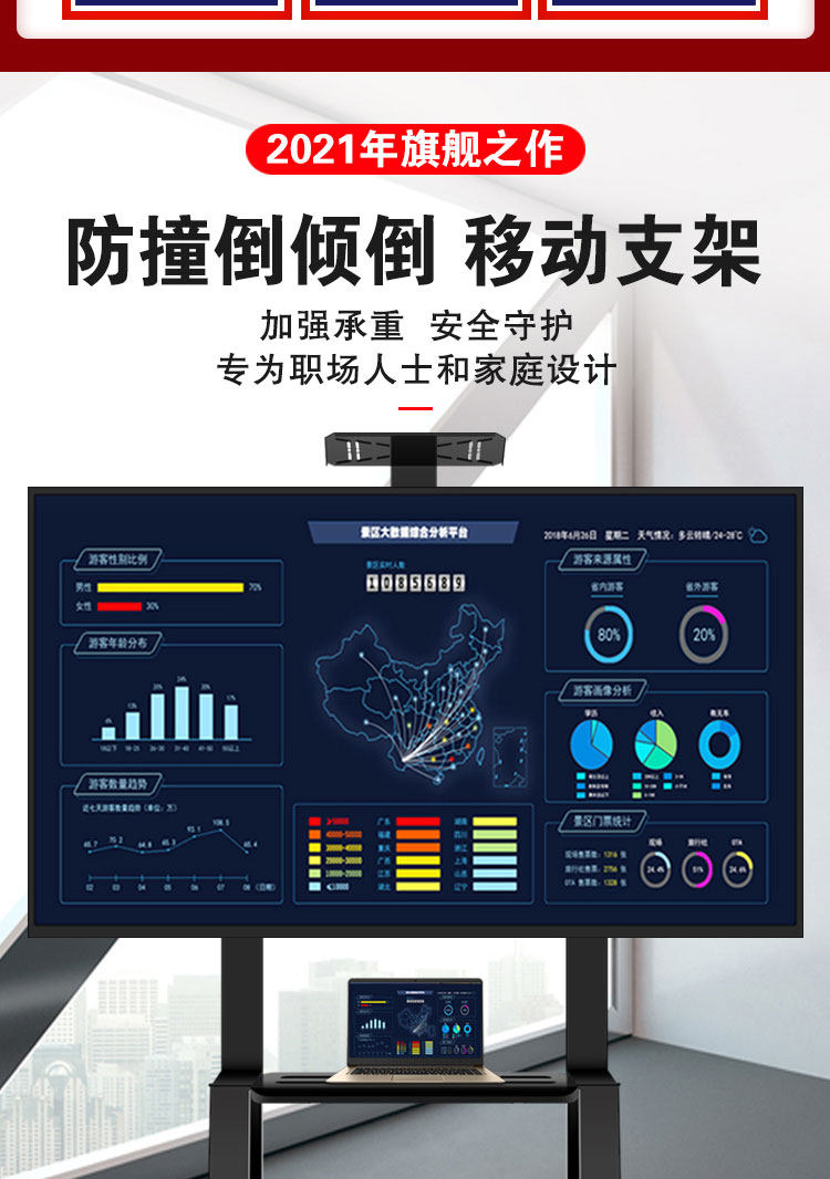 Мобильные телевизионные кронштейны посадки вертикальная тележка Колеса подходят для Xiaomi 65 -INCH All -In -One