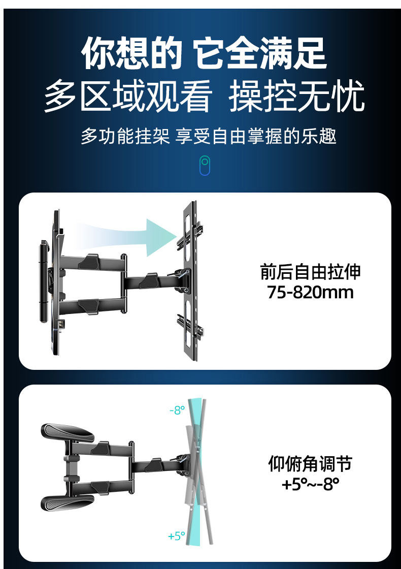 Телевизор, универсальная настенная крутящаяся телескопическая трубка, 40, 80 дюймов