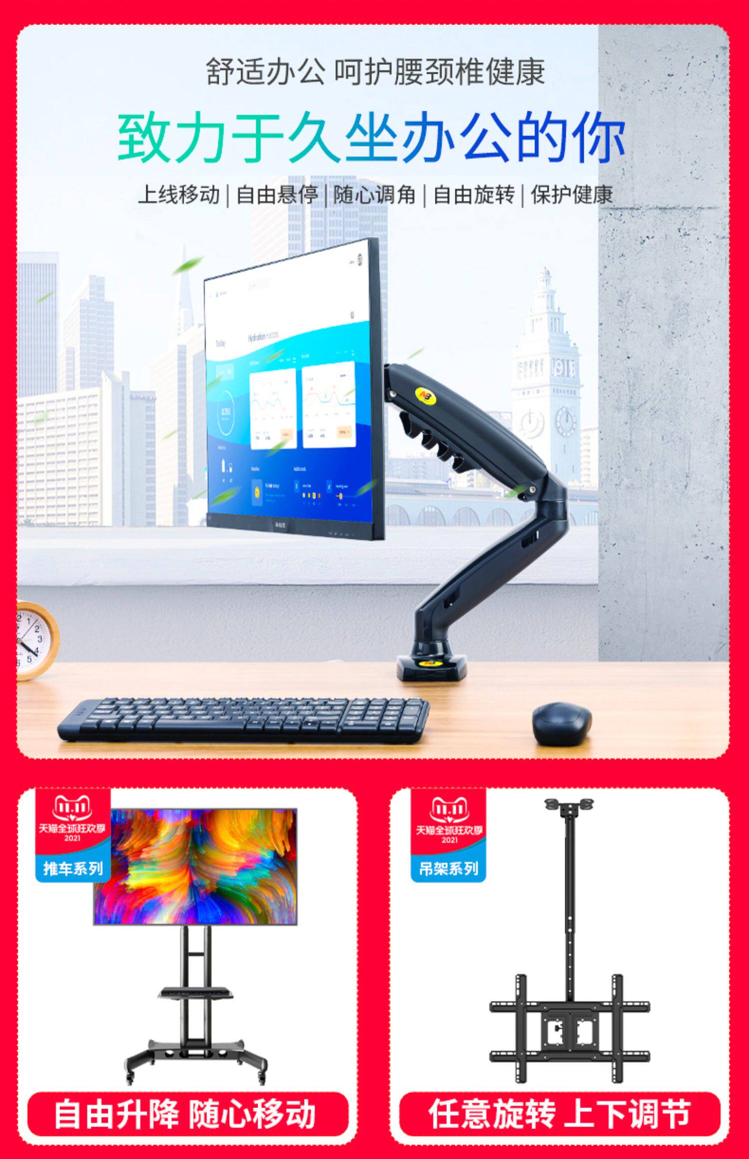 NB Двойное экрановое монитор компьютера Кронштейн Расширение Руководителя Вертация подвесного универсального настольного дисплея Основ