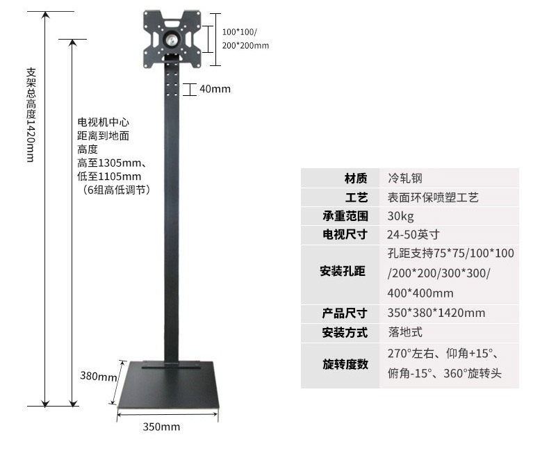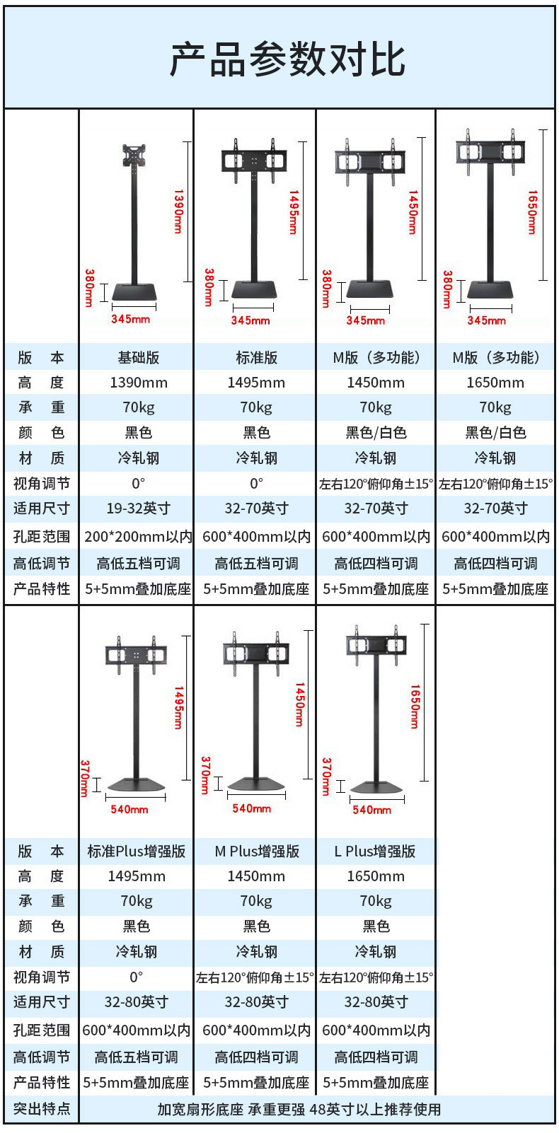 - 【32-70 дюймов】 1,55 Столба/без регулировки перспективы