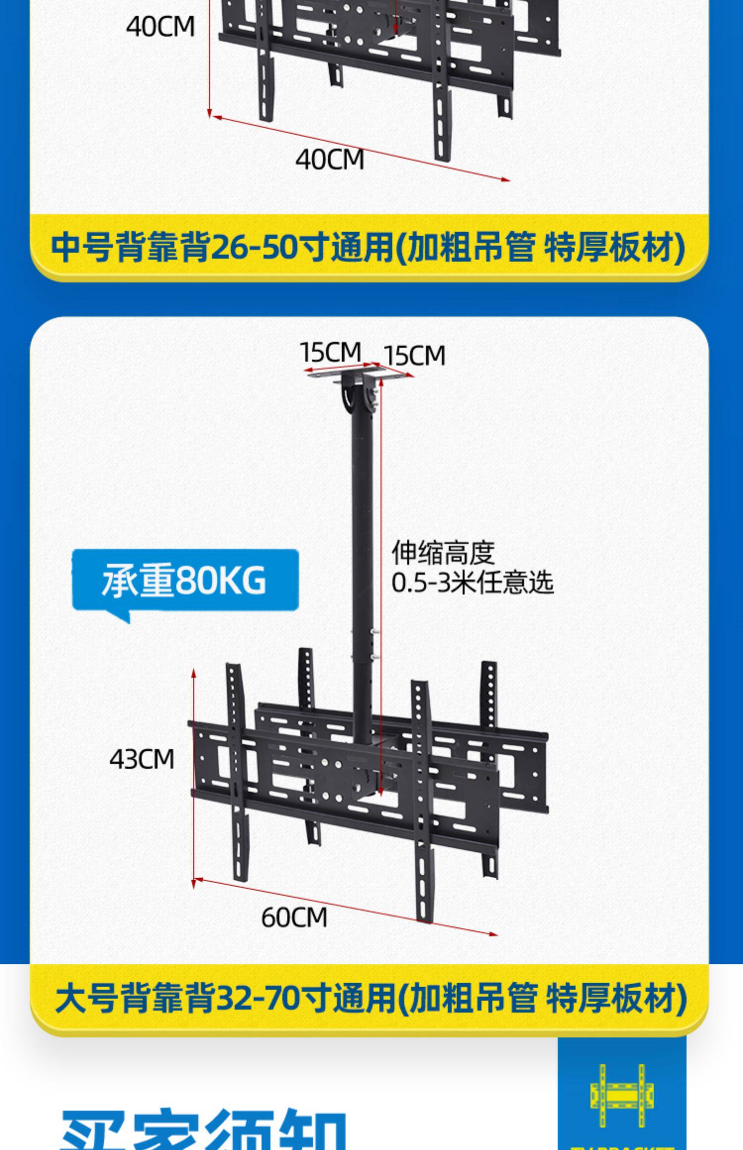 - Двухсторонняя двойная подвесная стойка 26-50 дюймов 0,5-2M Регулировка