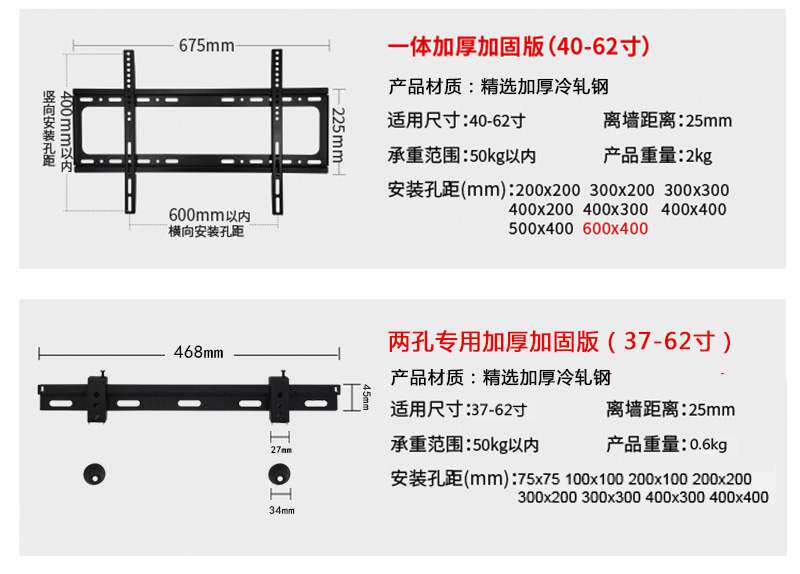 | Цвет: | 14-32-дюймовый, 26-55-дюймовый общепринятый утолщенная версия шаг 400x, 40-62-дюймовый общепринятый утолщенная версия высота 600X, 14-32 может отрегулировать верхний и нижний угол расстояния пор 20, 26-55-дюймовый может отрегулировать верхний и нижний угол расстояния отверстия, 55-75 дюймов могут отрегулировать верхний и нижний угол, расстояние отверстия |