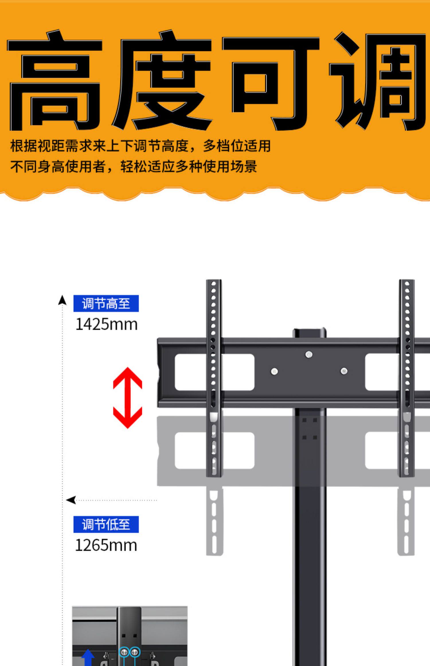 - Обновление 32-65-дюймовых 99A187CM+поддоны можно отрегулировать, вниз, вниз, влево и справа