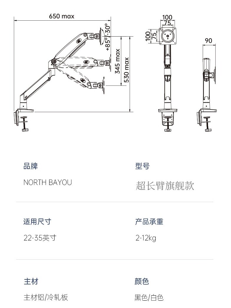 | Цвет: | Стандартный черный (рекомендуется для 22–34 дюймов), нагрузка 3–12 кг G70, Стандартный белый (рекомендуется для 22–34 дюймов), нагрузка 3–12 кг G70 |