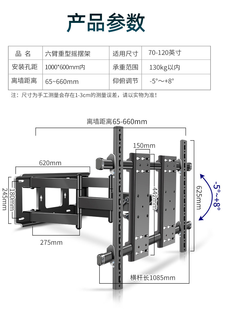 | Цвет: | 55-90 дюймов весом 70 кг складной телескопической рамы, 55-100 дюймов весом 85 кг складной телескопической рамы, 70-120 дюймов весом 130 кг шестиручный кронштейн |
