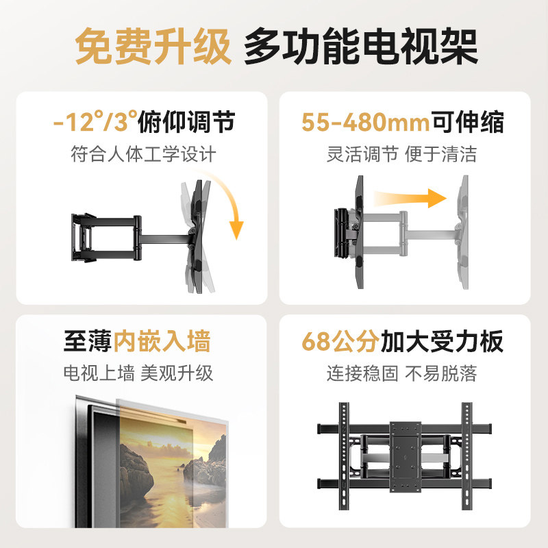 Универсальный телескопический телевизор, крутящаяся настенная трубка, 556575 дюймов