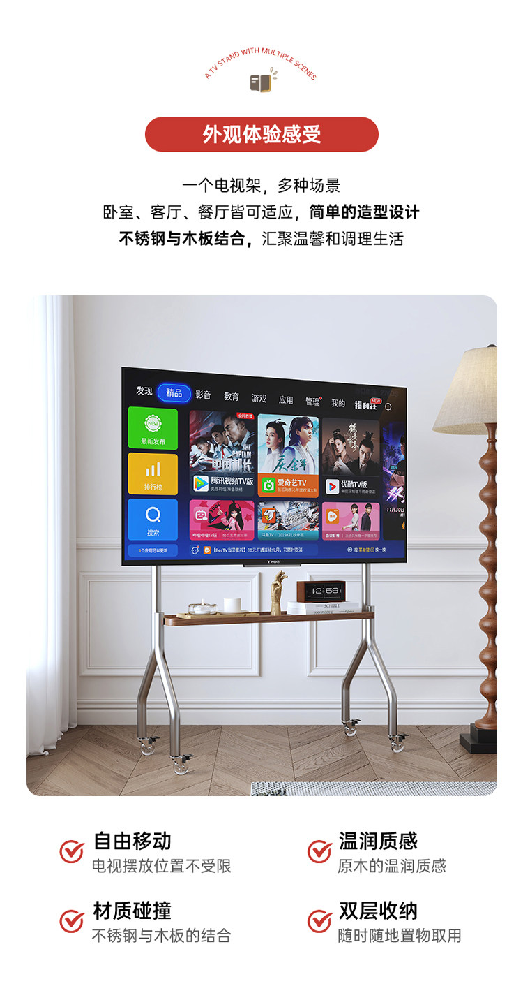 Телевизор, трубка из нержавеющей стали, тележка для спальни для домашнего использования, 40, 75 дюймов