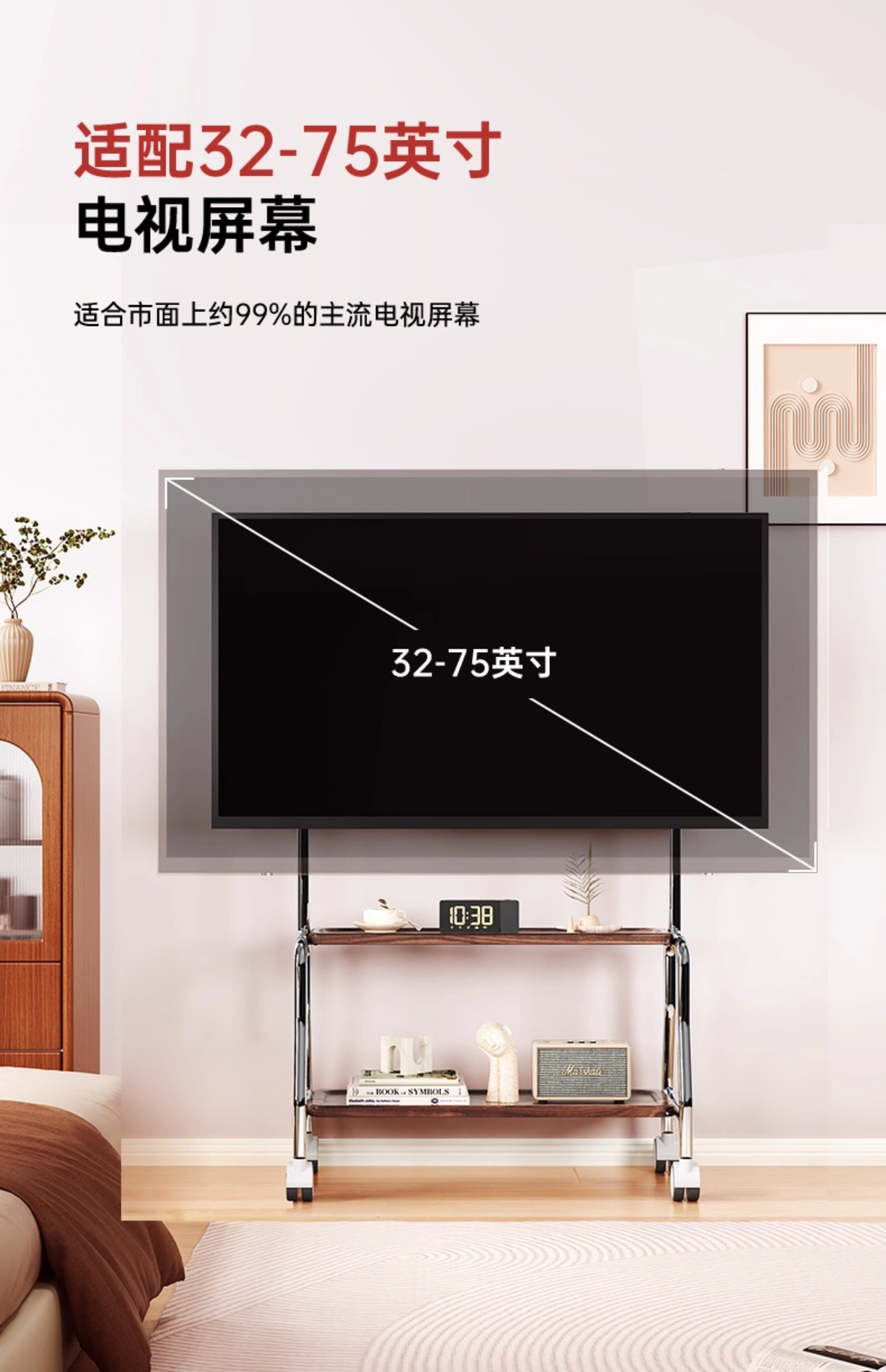 Телевизор, трубка, стальной ремешок из нержавеющей стали, универсальная тележка, 75 дюймов