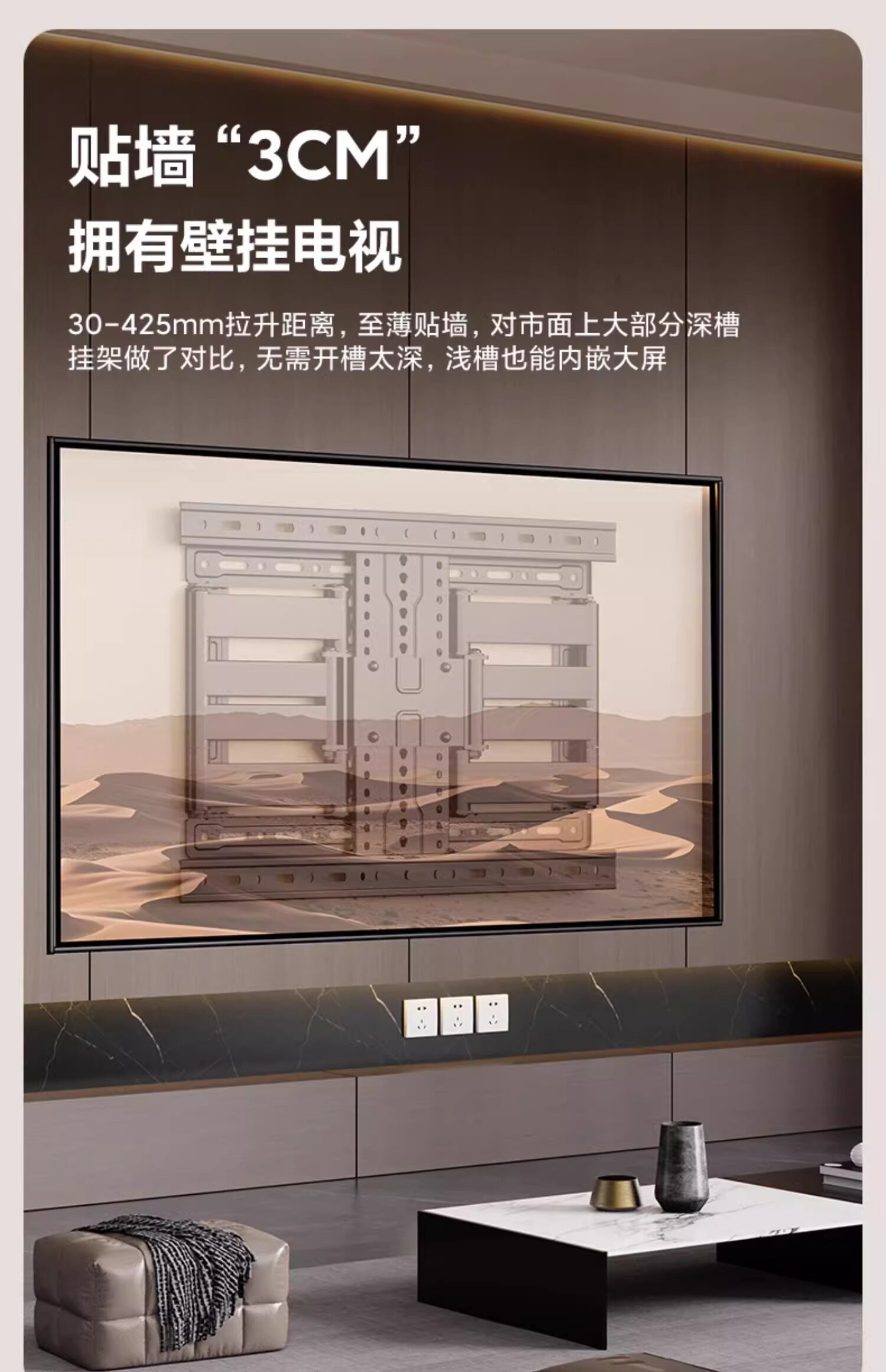 Ультратонкое крепление для телевизора 2025, телескопическое, поворотное, с регулировкой вверх и вниз, подходит для Skyworth, Sony, Hisense, TCL и т. д.