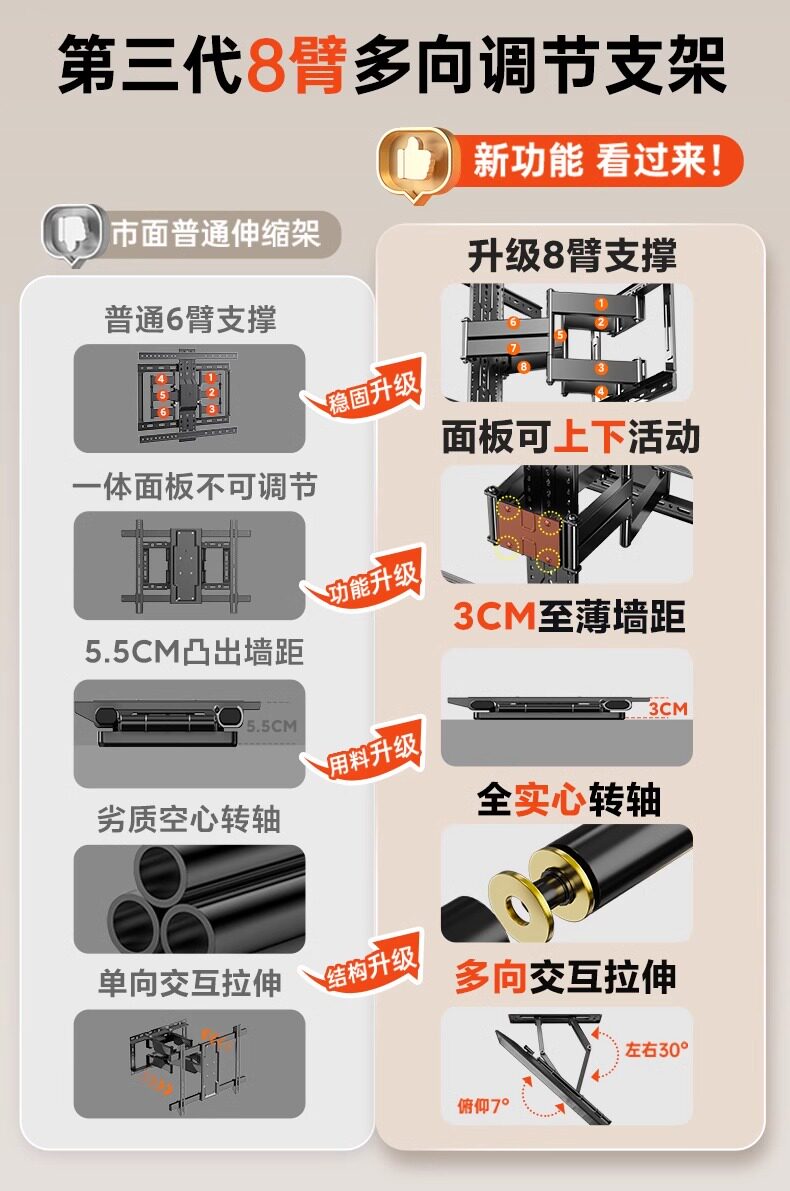 | Цвет: | Регулируется вверх, вниз, влево и вправо [универсальный размер 40–70 дюймов] Недавно модернизированные восемь рычагов + полностью цельный вал/3 см для настенного монтажа, Adjustable up, down, left, and right [40-80 inches universal] Newly upgraded eight arms + full solid shaft/3 cm wall-mounted, Регулируется вверх, вниз, влево и вправо [универсальный размер 55–90 дюймов] Новые модернизированные восемь рычагов + полностью цельный вал/3 см для настенного монтажа, Регулируется вверх, вниз, влево и вправо [универсальный размер 55–100 дюймов] Недавно модернизированные восемь рычагов + полностью цельный вал/3 см для настенного монтажа |