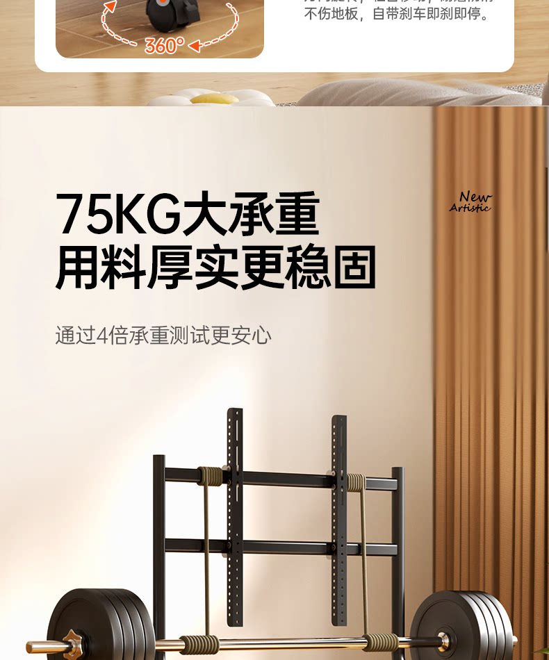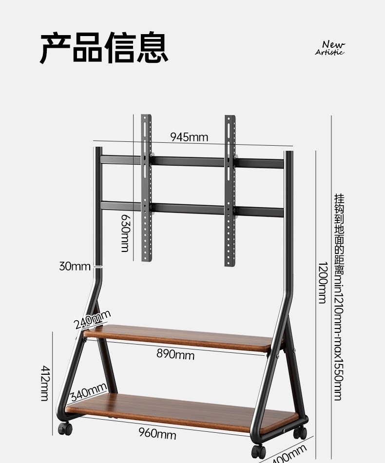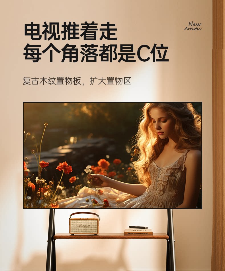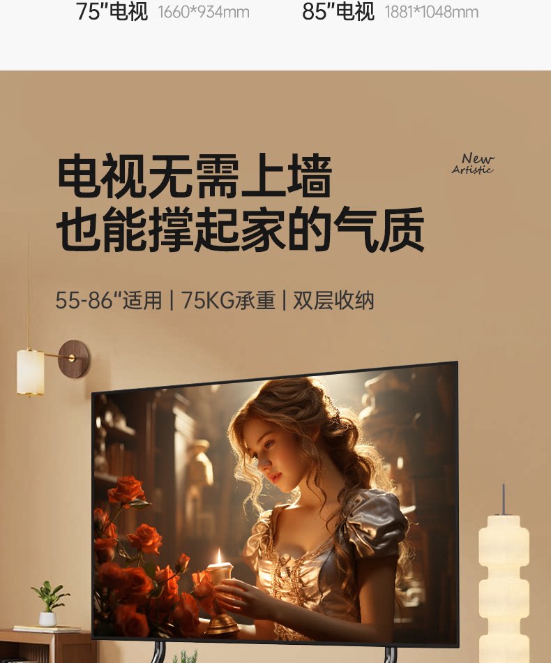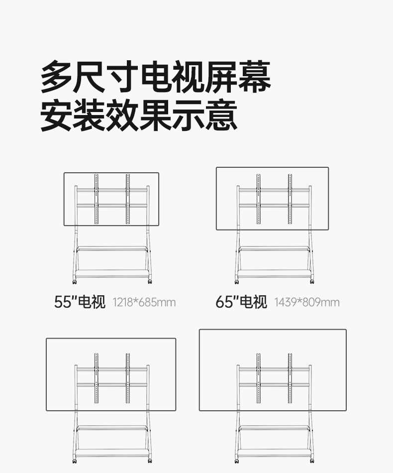 Напольная художественная подставка для телевизора, передвижная вертикальная подставка на тележке с колесами, подходящая для 55/65/75 дюймов 2240