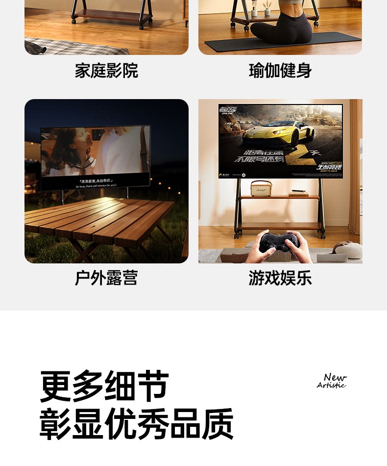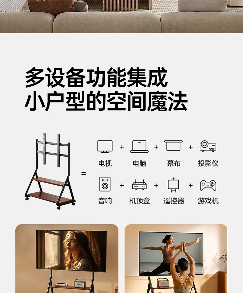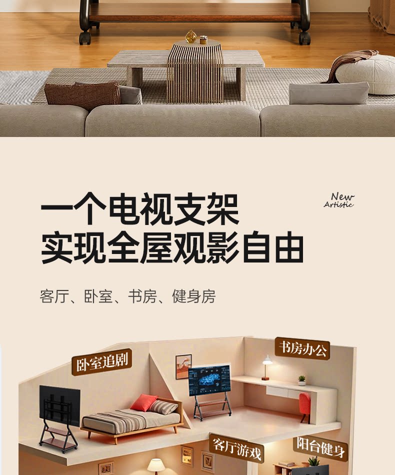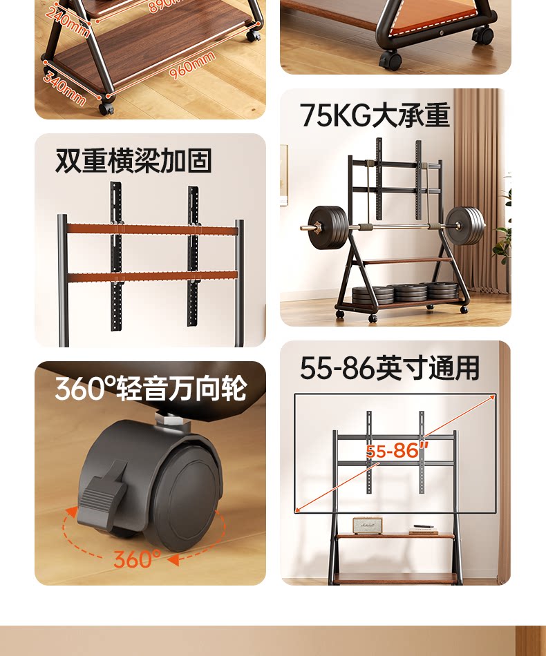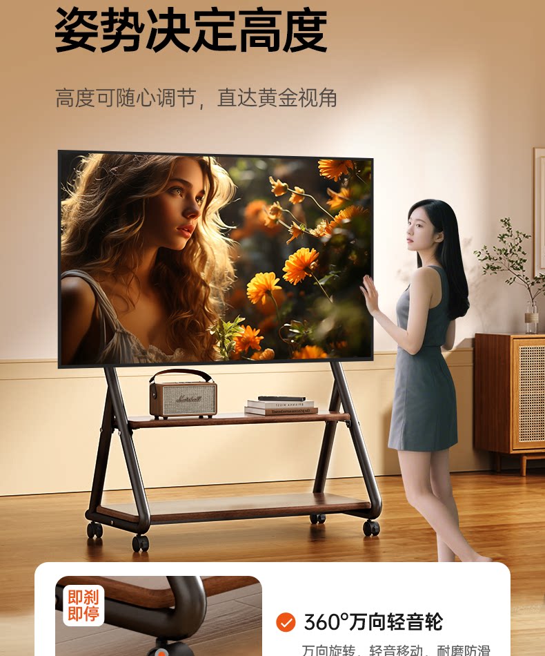 Напольная художественная подставка для телевизора, передвижная вертикальная подставка на тележке с колесами, подходящая для 55/65/75 дюймов 2240