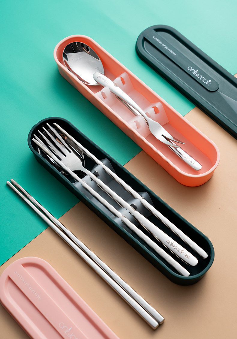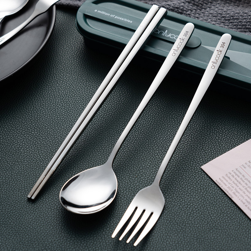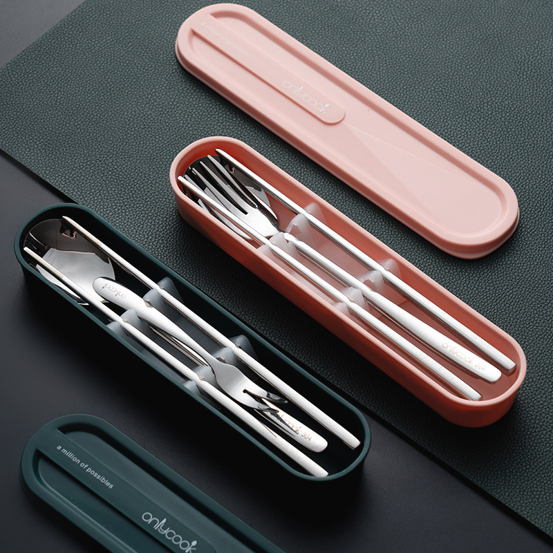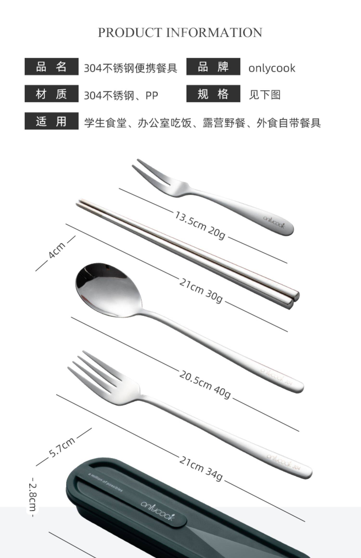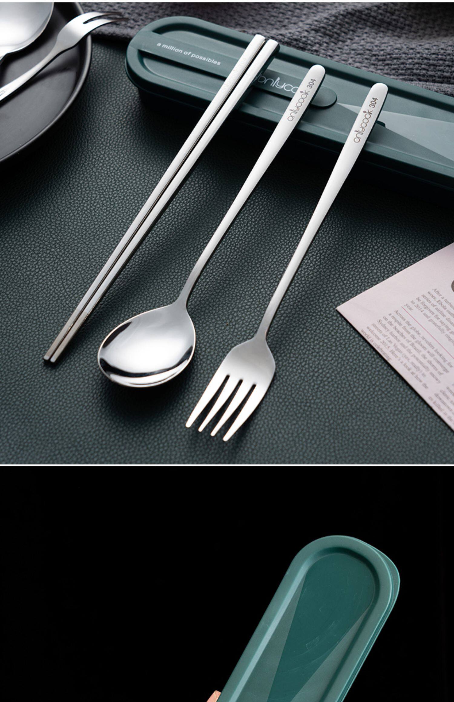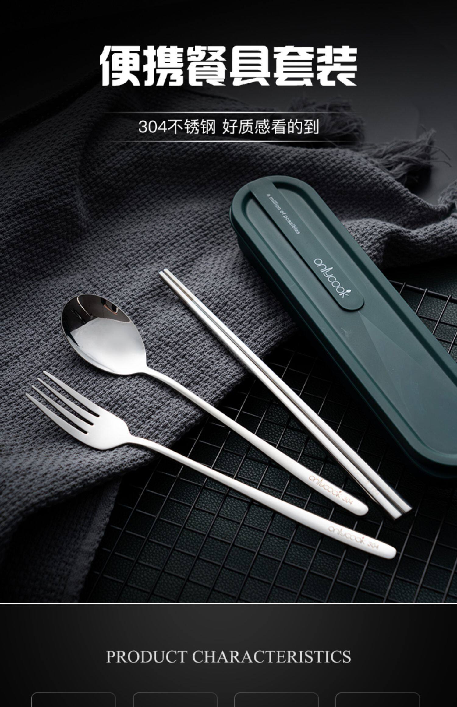onlycook Комплект для школьников и студентов, портативная посуда, палочки для еды, ложка, вилка, коробка для хранения из нержавеющей стали, 3 предмета