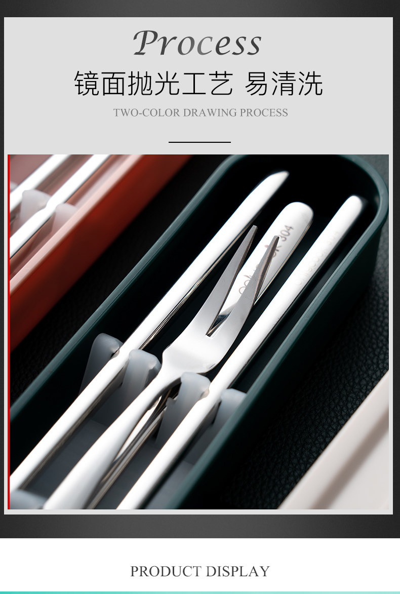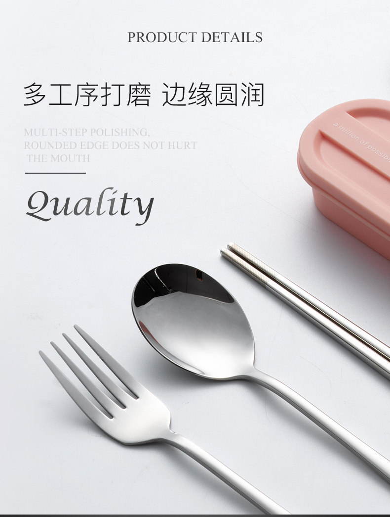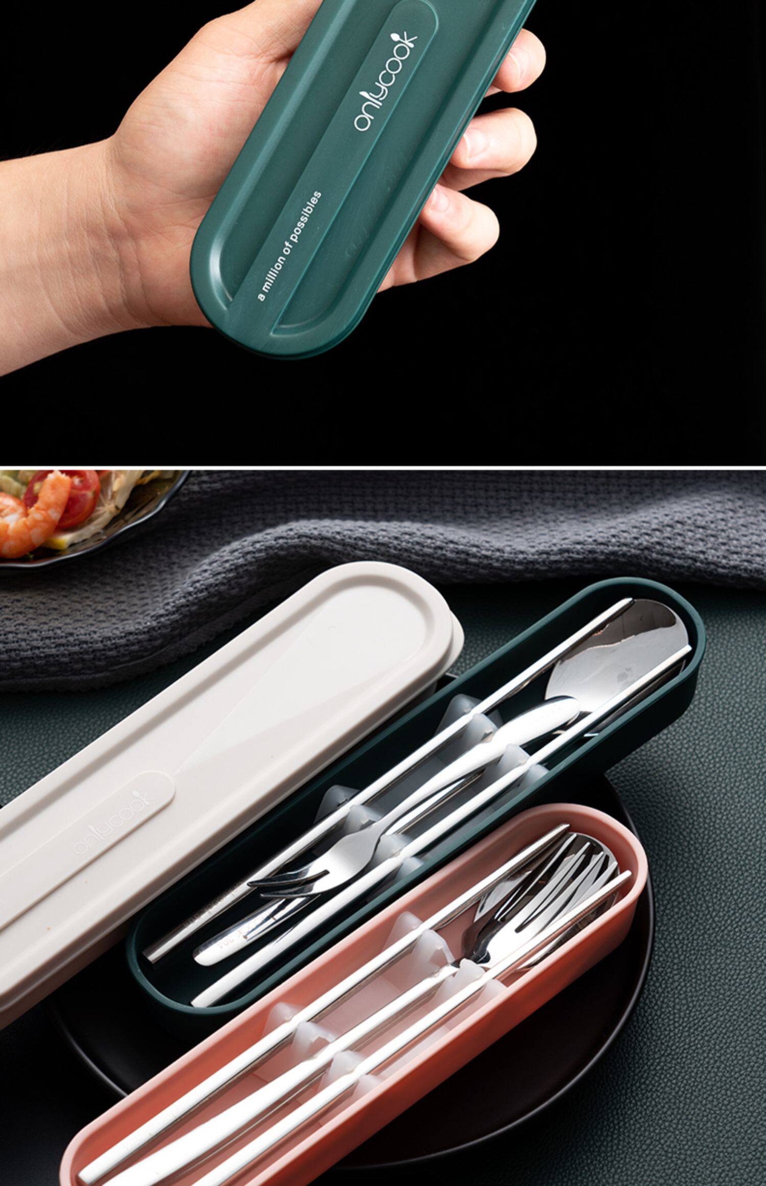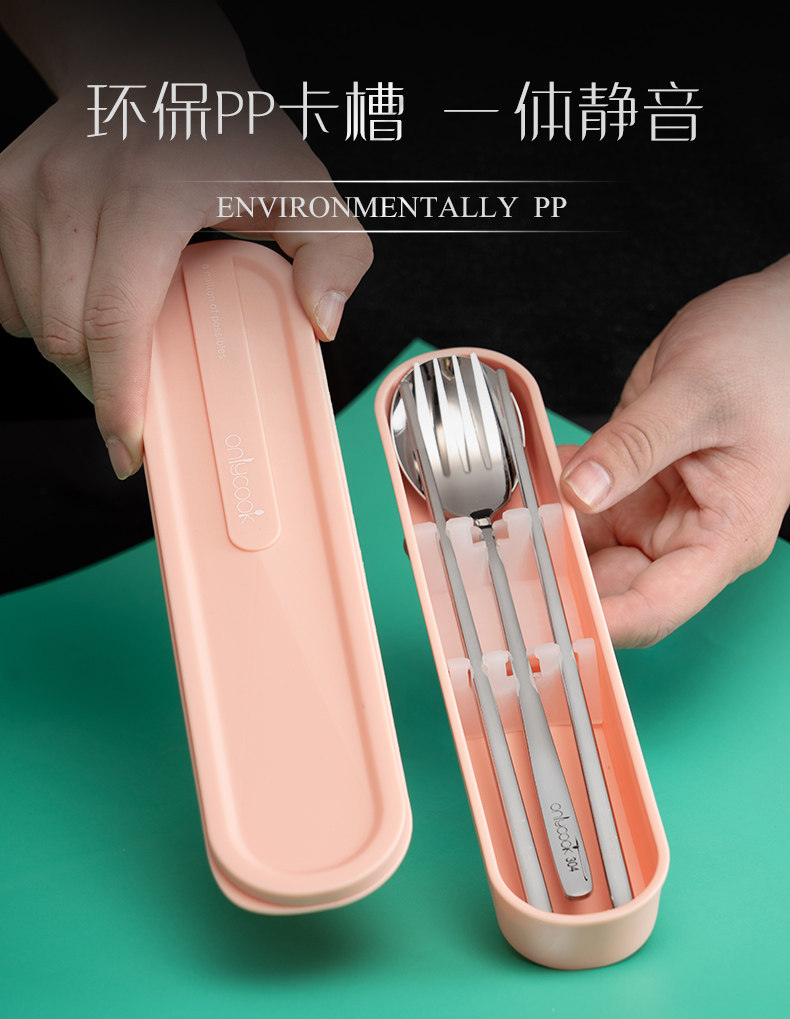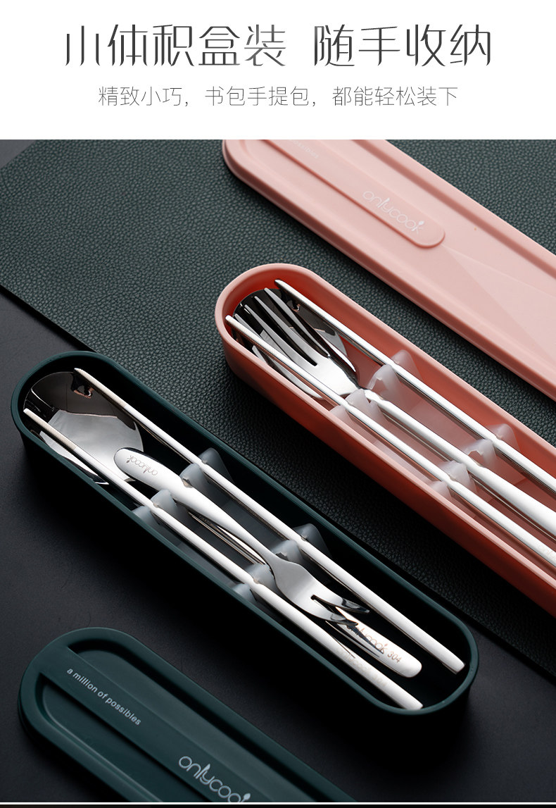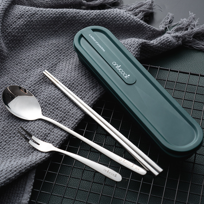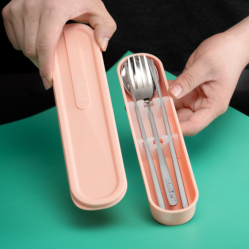 onlycook Комплект для школьников и студентов, портативная посуда, палочки для еды, ложка, вилка, коробка для хранения из нержавеющей стали, 3 предмета