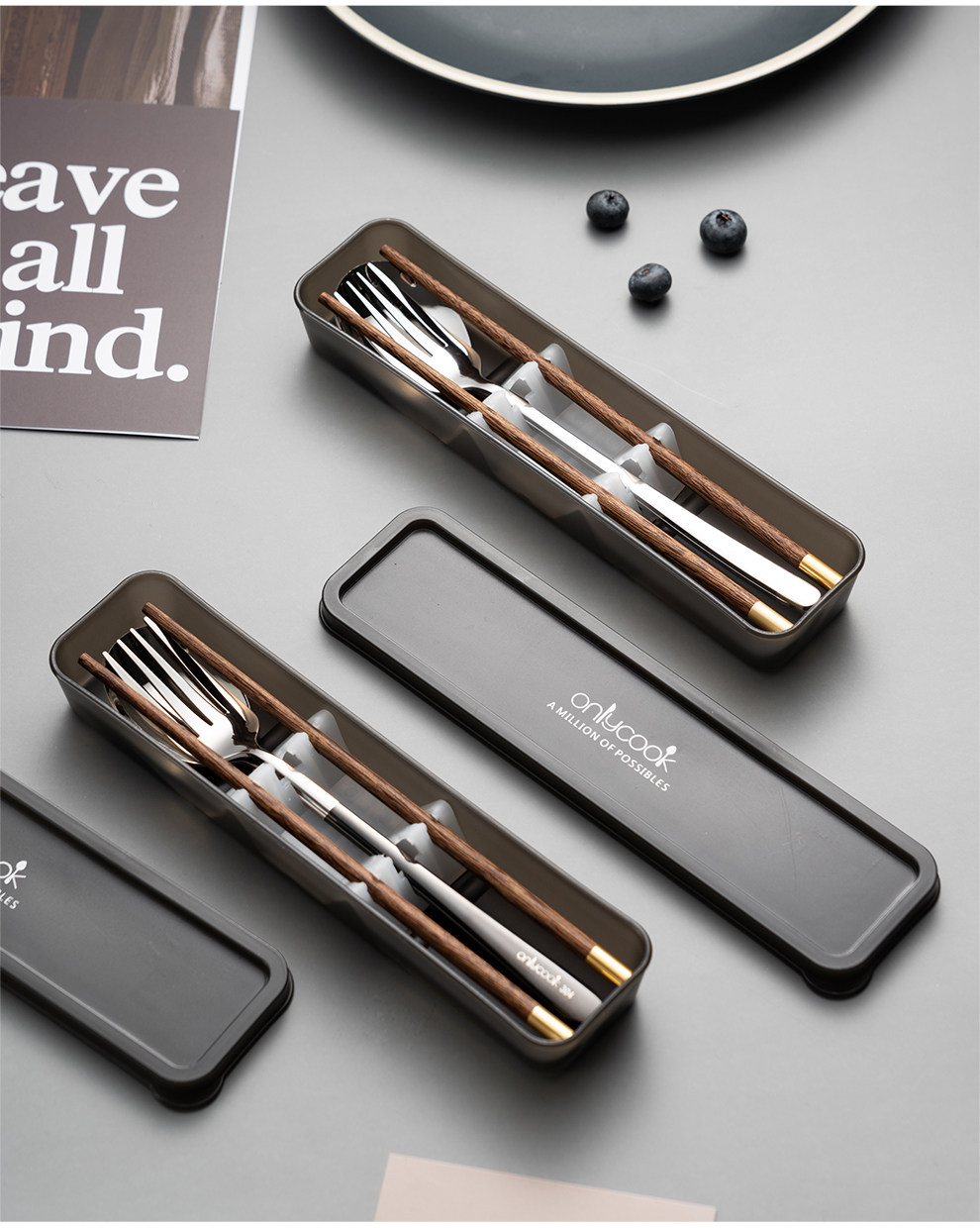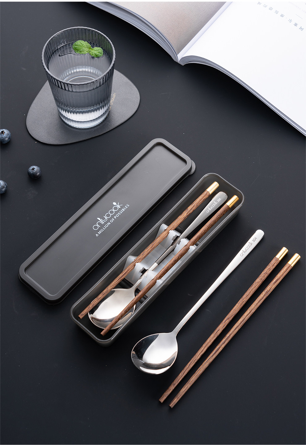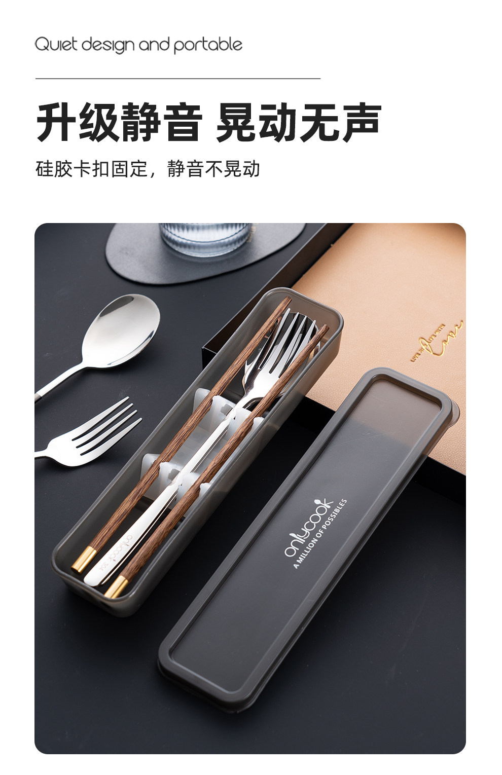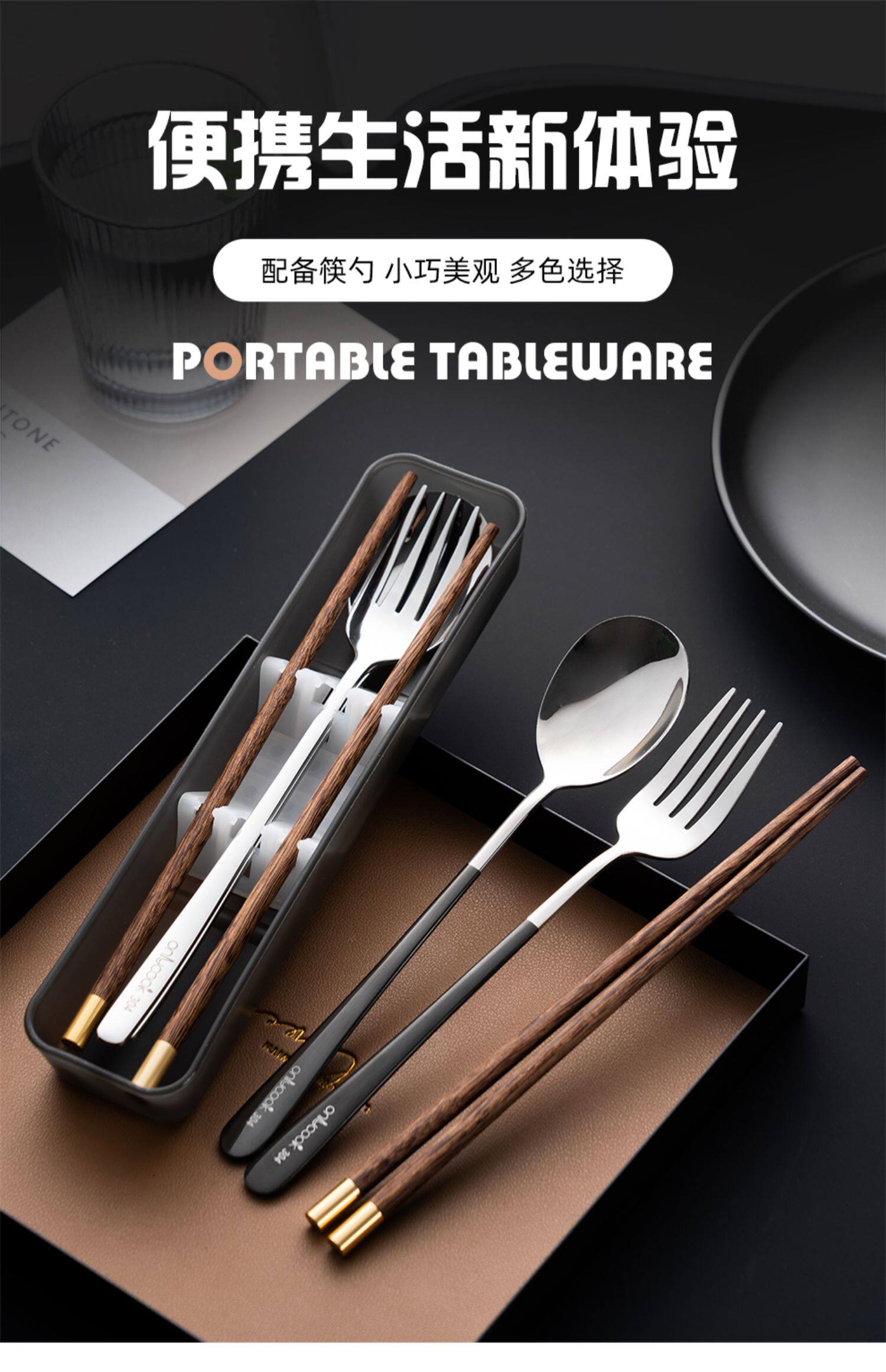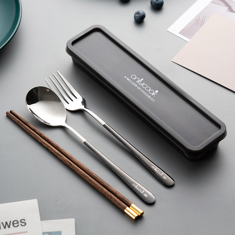 Деревянные палочки для еды, ложка, портативный комплект, посуда из нержавеющей стали, коробка для хранения для школьников и студентов