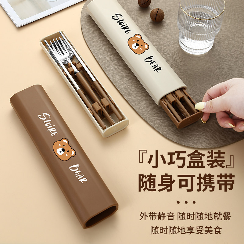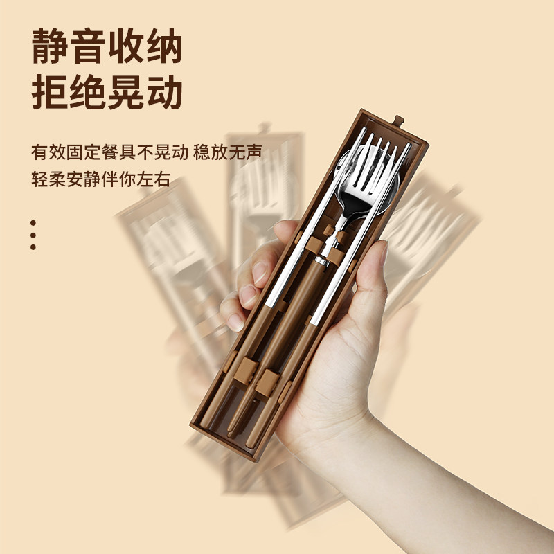 Палочки для еды, ложка, портативный комплект, посуда, коробка для хранения для школьников и студентов, 3 предмета