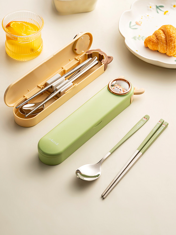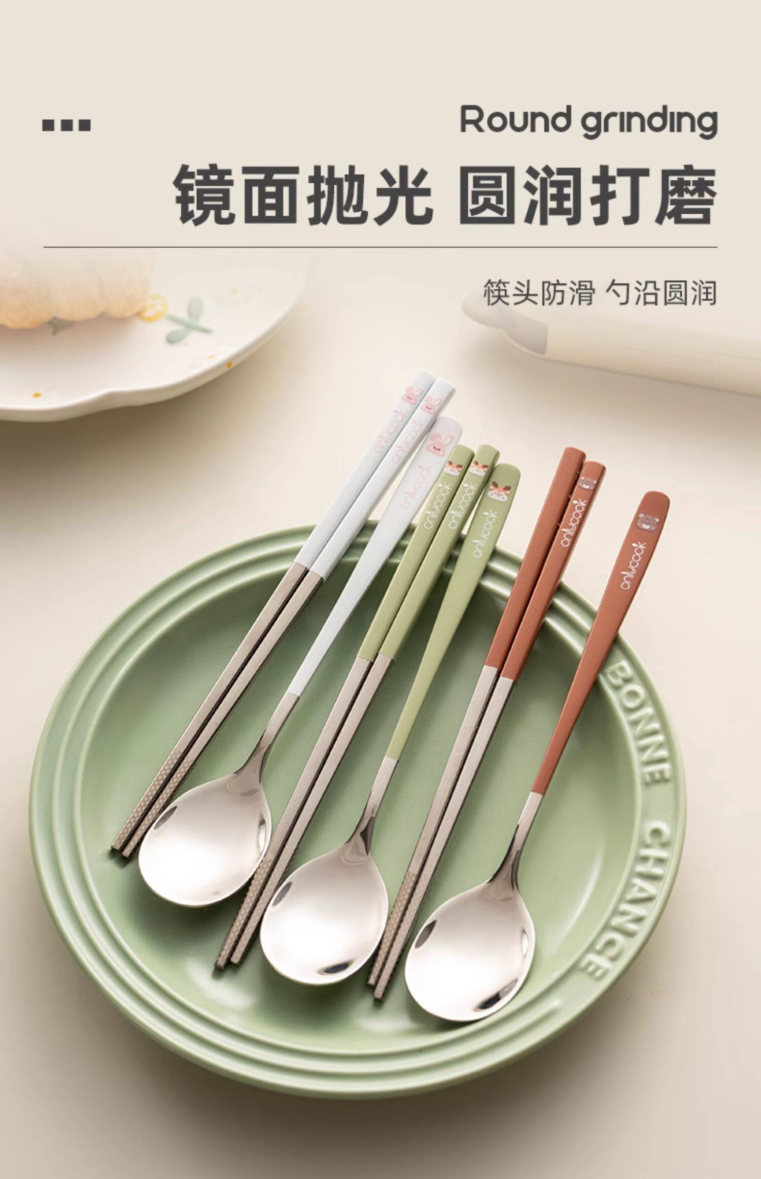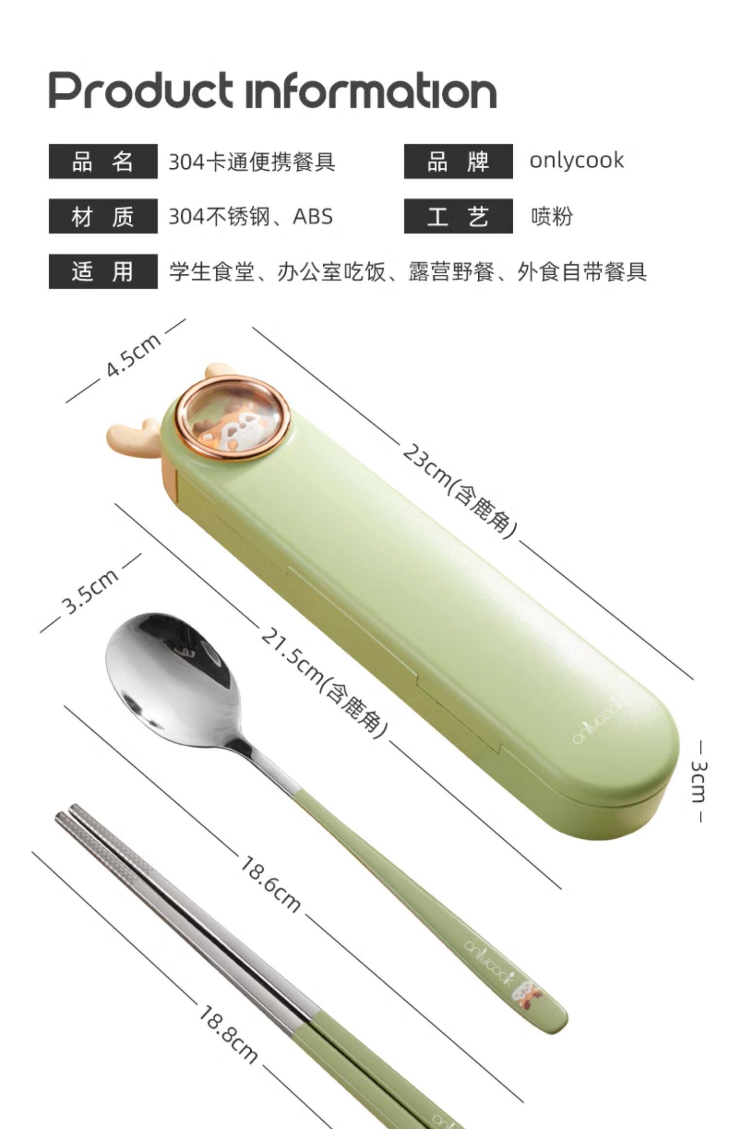 onlycook Детская портативная посуда для школьников и студентов, палочки для еды из нержавеющей стали, ложка, комплект, нержавеющая сталь AISI 304