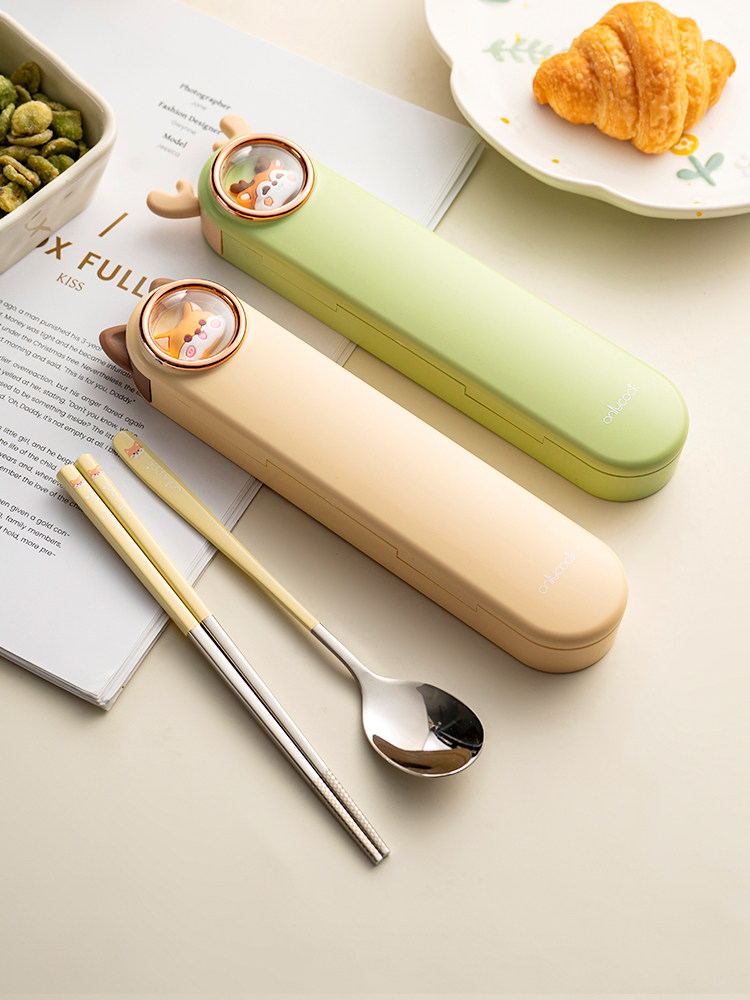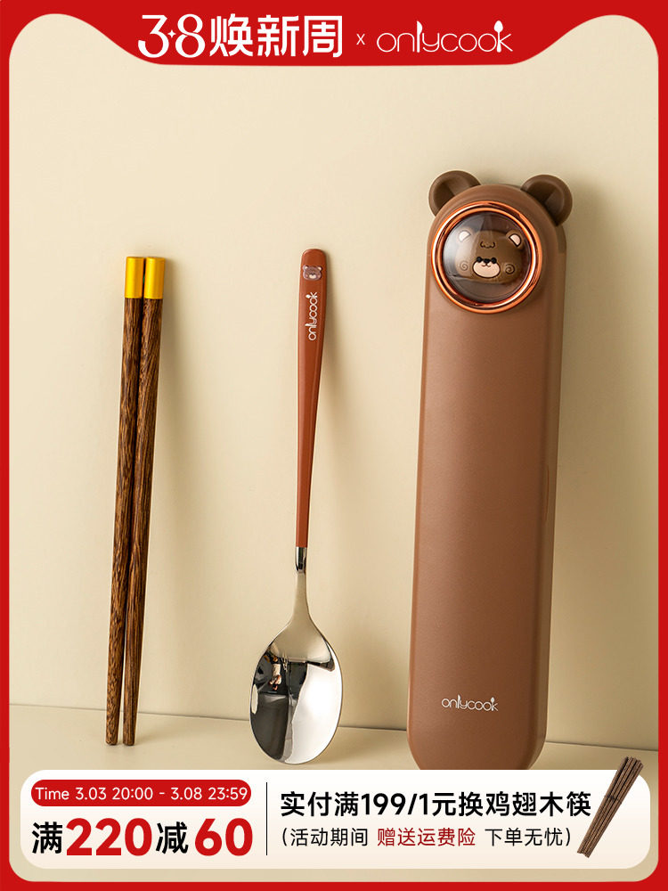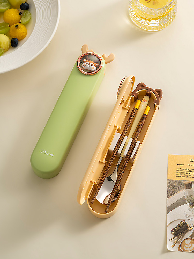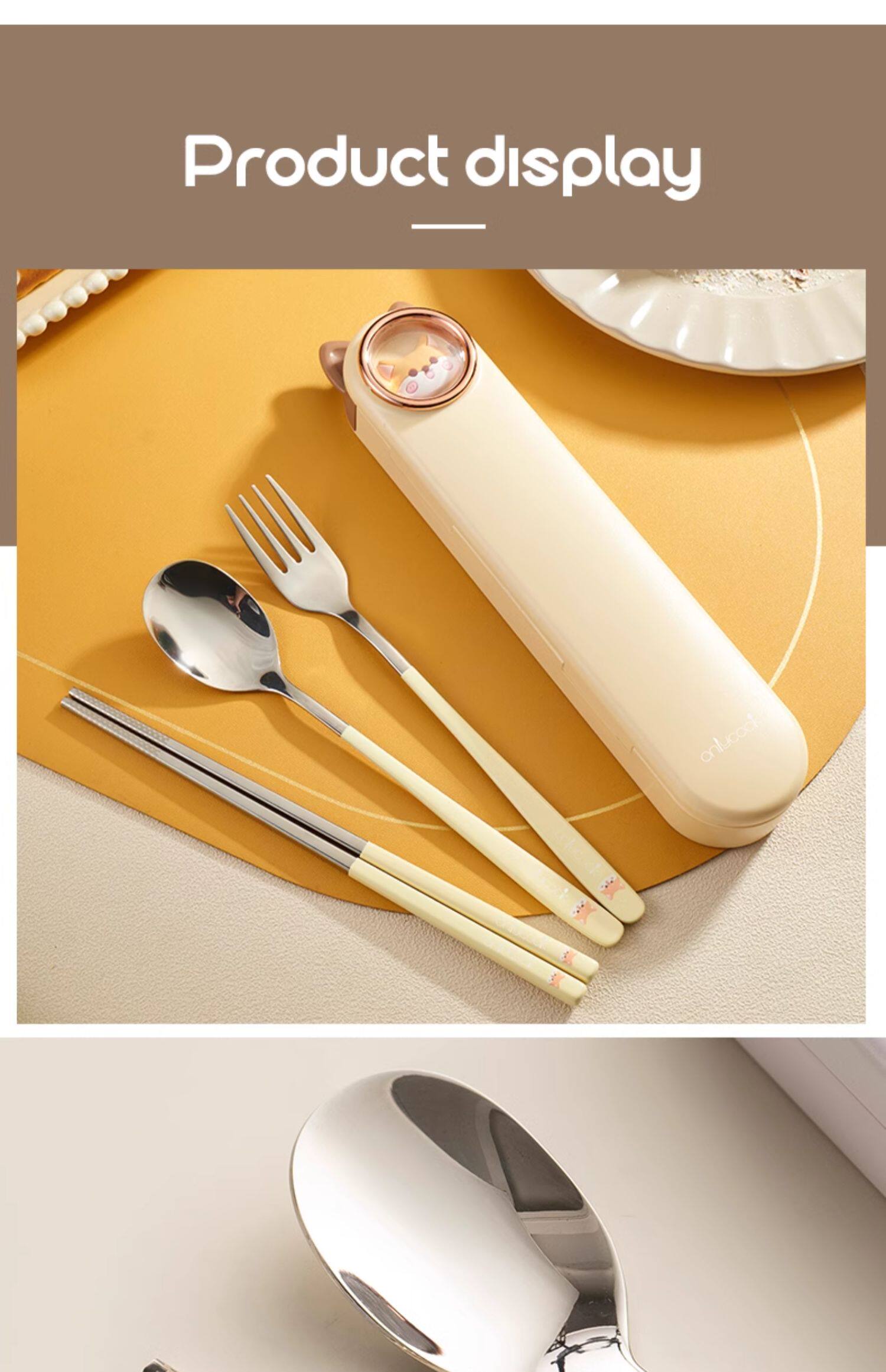 onlycook Детская портативная посуда для школьников и студентов, палочки для еды из нержавеющей стали, ложка, комплект, нержавеющая сталь AISI 304