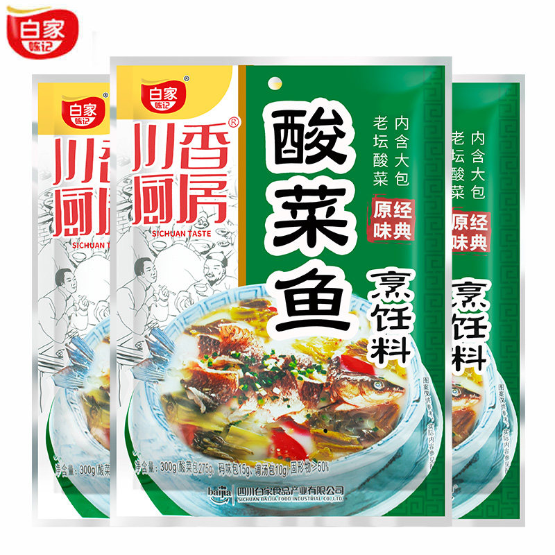 白家陈记 Сумка для приправы с квашеной капустой рыба 300 г*3 мешки с водой из вареного рыбы ингредиенты горячий горшок заставляют рыбу приправить старый алтарь Sichuan