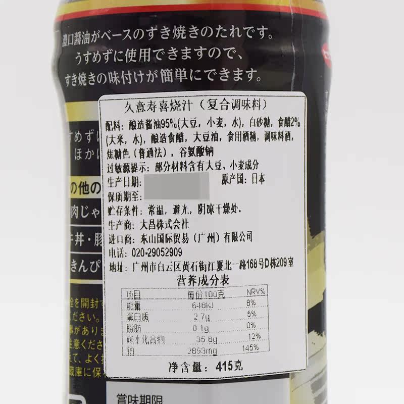 Импортированная японская приправа Shouxi Cassing Jiuyi Shouxi Pot Soup Soupe Soup говяжий горшок 415 г специальных предложений